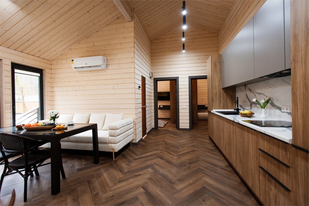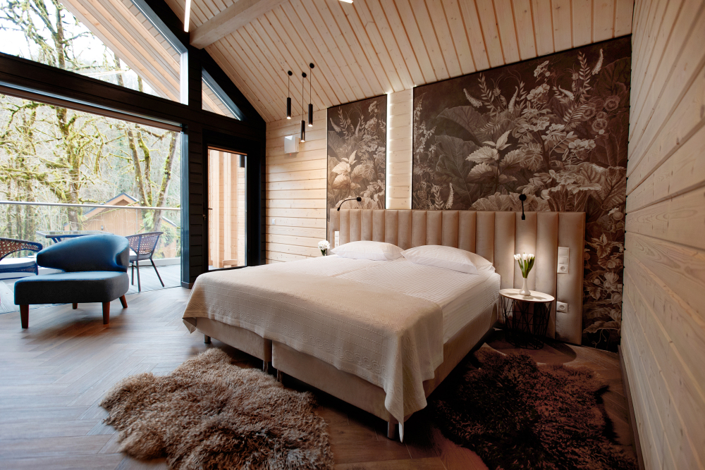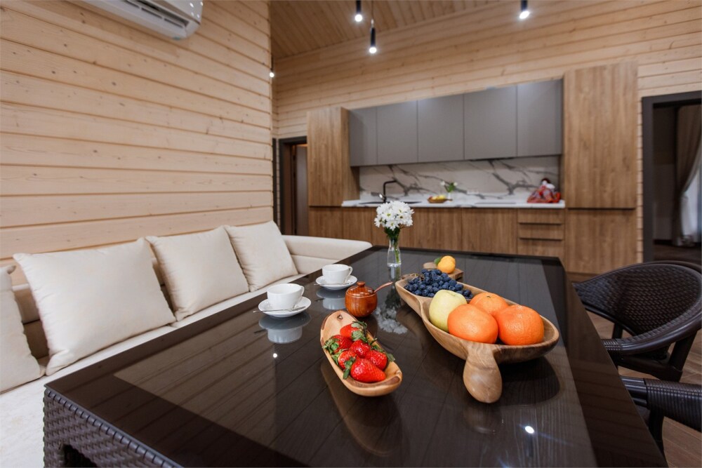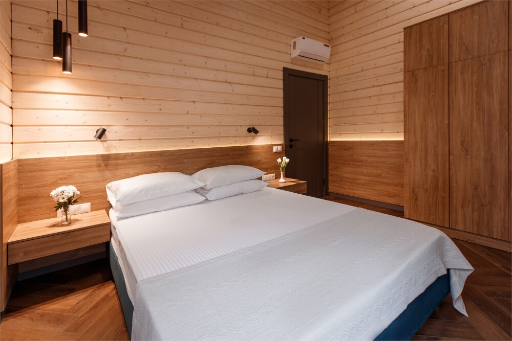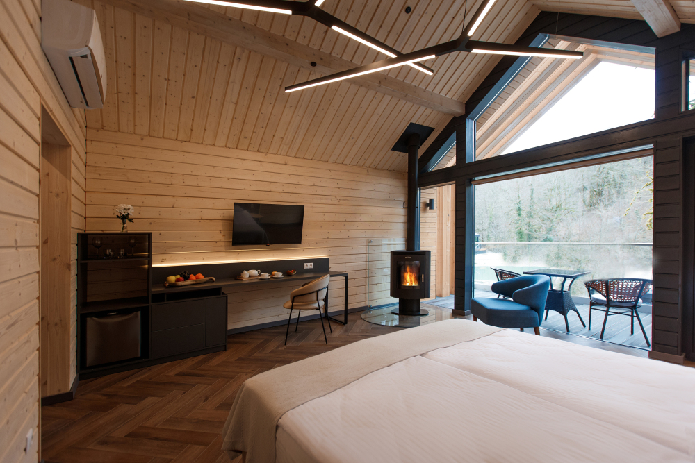 Барнхаус выполнен в европейском стиле. В каждом дизайнерская мебель из экологичных материалов, спальня-гостиная с кровать King size. Идеальный выбор для романтического уикенда и новых эмоций.
