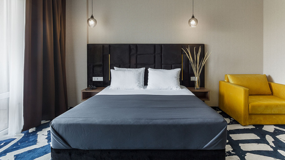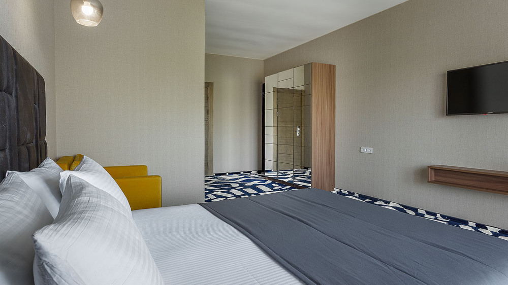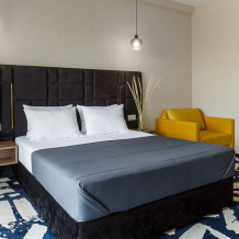 Просторный двухкомнатный номер с гостиной и спальней. Номера расположены со 2 по 7 этажи в корпусе.