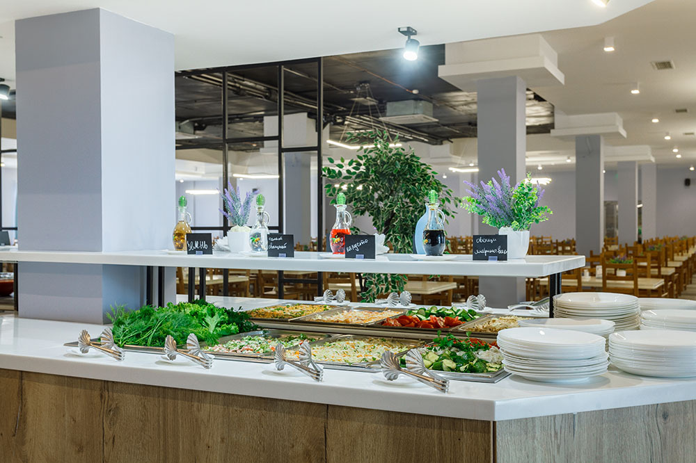 Завтрак, обед и ужин по системе «Шведский стол» ежедневно организуются в ресторане «шведской линии». Ассортимент «шведского стола» предполагает несколько вариаций первых и вторых блюд, безалкогольных горячих и прохладительных напитков, свежих салатов, сезонных овощей, зелени и фруктов, а также выпечки собственного производства. Алкогольные напитки: охлажденные красные/белые сухие/полусладкие вина региональных виноделов. Для маленьких гостей. Для удобства организации питания детей, предусмотрен отдельный детский стол с блюдами, приготовленными по всем рекомендациям к детскому диетическому питанию. Для детей от 0 лет баночное питание и сухие смеси, в том числе безмолочные, сок для детского питания. Блюдо дня: завтрак – яичница, обед и ужин – блинчики.