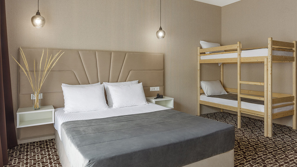 Размещение: двоих гостей на основных местах + 1 ребёнок до 5 лет включительно, без места, с питанием.