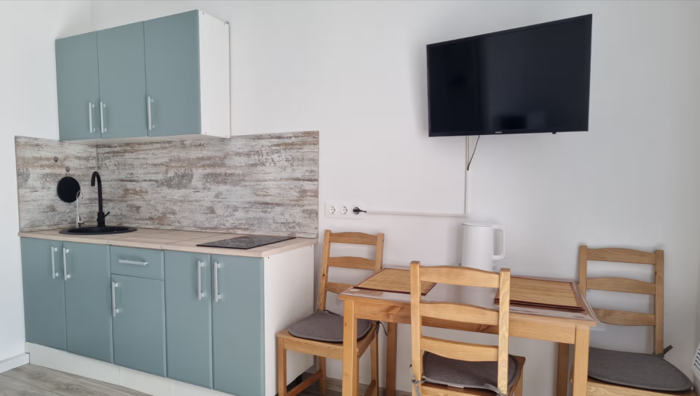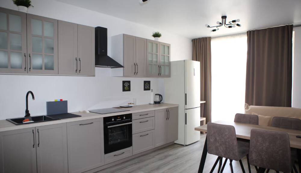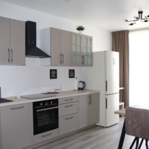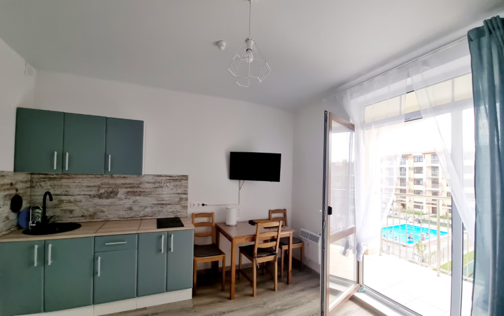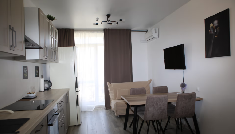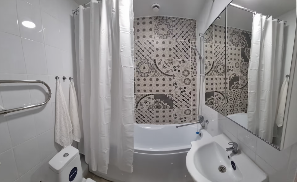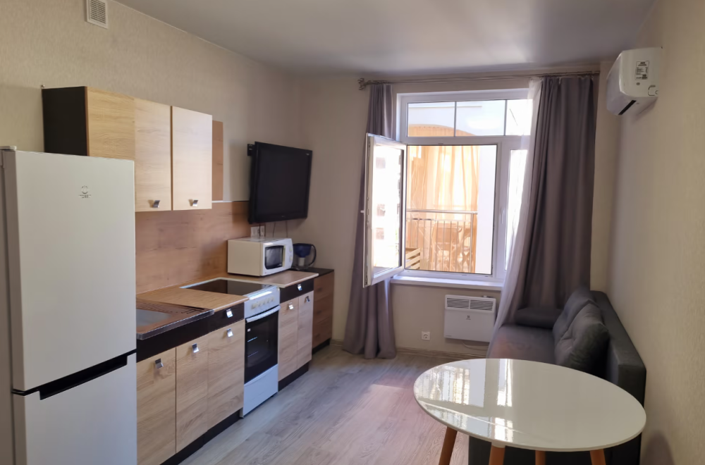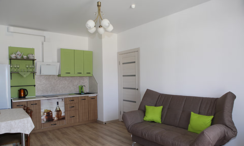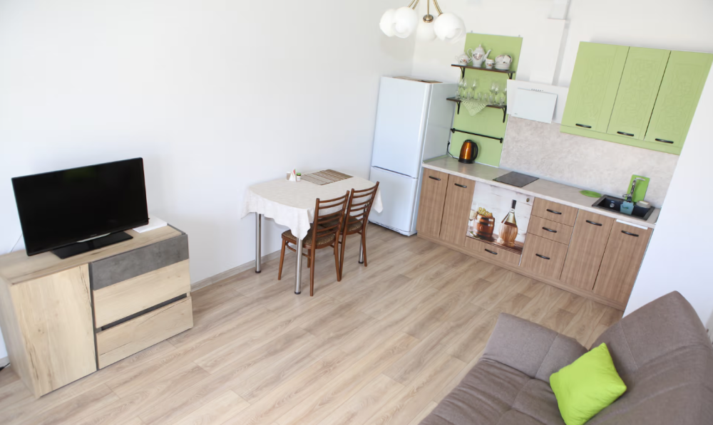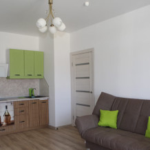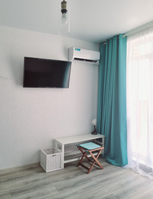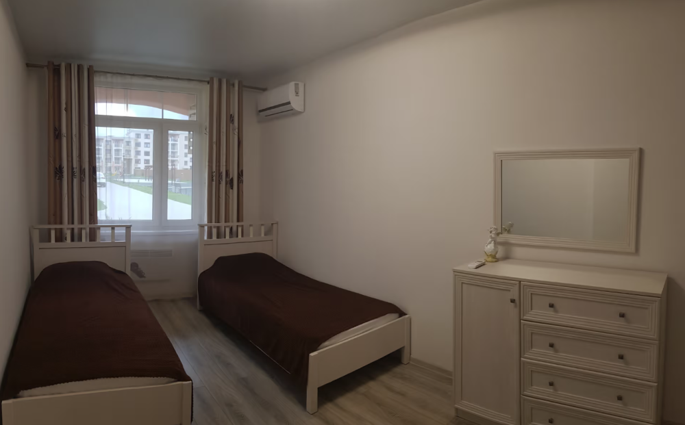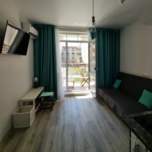 Все номера имеют стандартное оснащение – сплит-система, холодильник, телевизор, фен, утюг, посуда, чайник, микроволновая печь, кухонная плита, стиральная машина, Wi-Fi. В большинстве номеров имеется меблированный балкон.