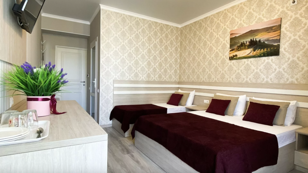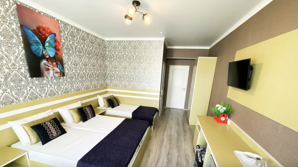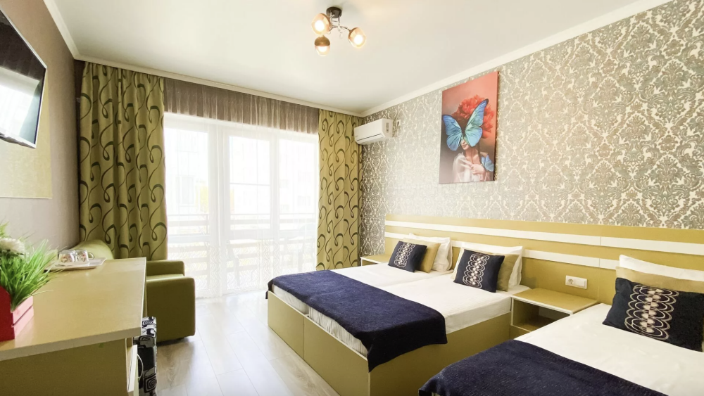 Гостевой дом был построен в 2020 году. Находится вдали от шумных туристических маршрутов всего в 50 метрах от пляжа, поэтому дорога до песчаного пляжа из чистейшего кварцевого песка займет одну минуту. Гостевой дом находится на тихой улочке и поэтому станет отличным выбором для тех, кто устал от городской суеты и хочет насладиться тишиной и комфортом. Отель отлично подойдет для семейного отдыха и отдыха с детьми. В пешей доступности находятся продуктовые магазины, столовая, остановка общественного транспорта, вся туристская инфраструктура проспекта: пляжи, дельфинарий, аквапарк, океанариум, питьевой бювет, детский парк аттракционов.