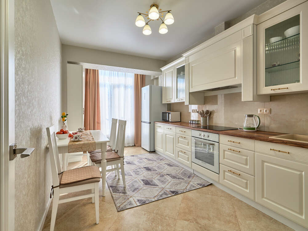 1 двуспальная кровать, 1 диван-кровать, детская кроватка (по запросу)