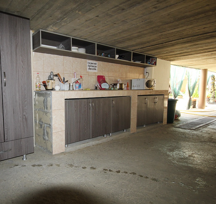 На территории гостевого дома оборудовано место для мангала, есть общая кухня с газовой плитой, микроволновой печью и всем необходимым для самостоятельного приготовления пищи, детская площадка, места для отдыха во дворе, парковка на территории. Холодная и горячая вода - постоянно, интернет Wi-Fi – бесплатно.