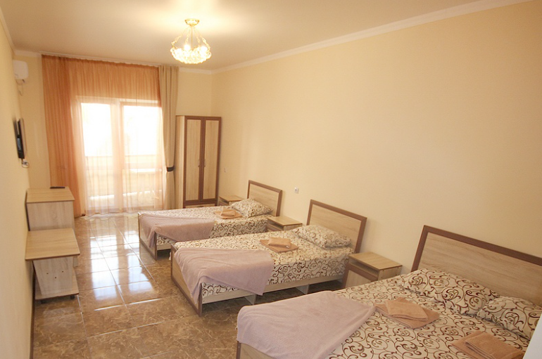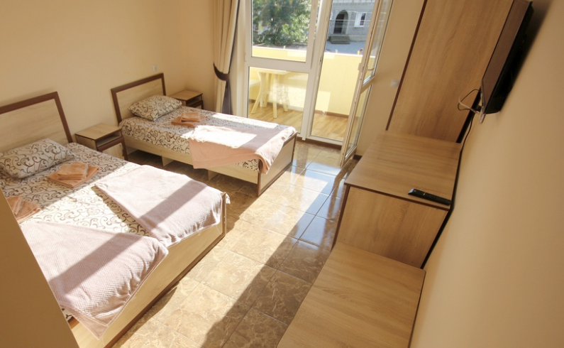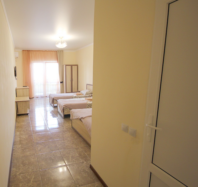 Гостям, для проживания, предлагаются номера разной вместимости, со всем необходимым для комфортного отдыха. Все номера с индивидуальными балконами.