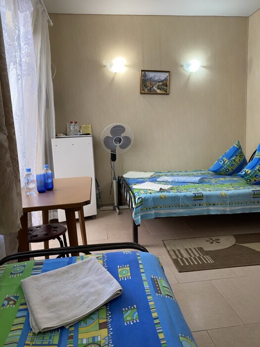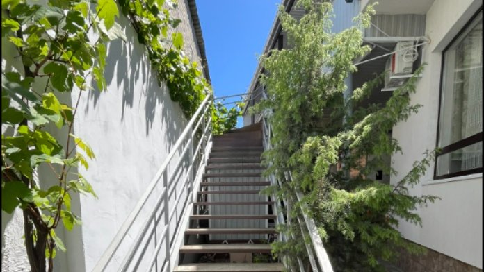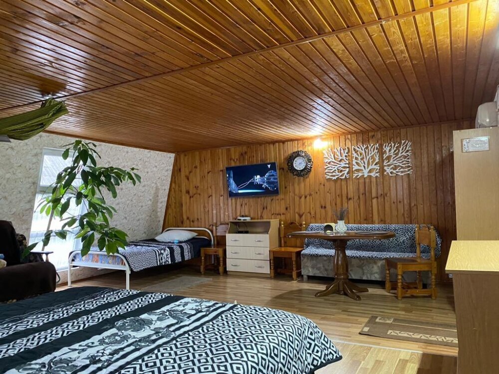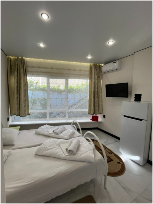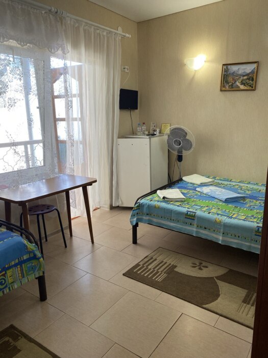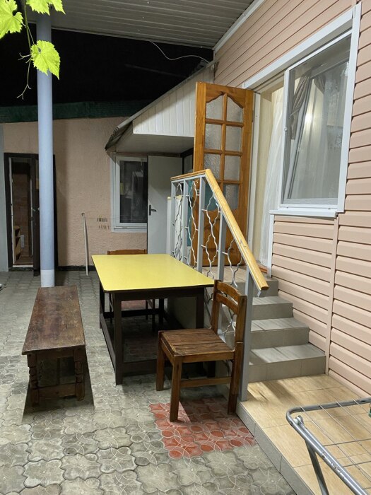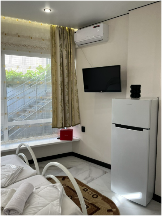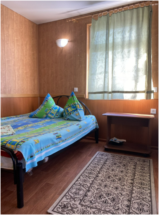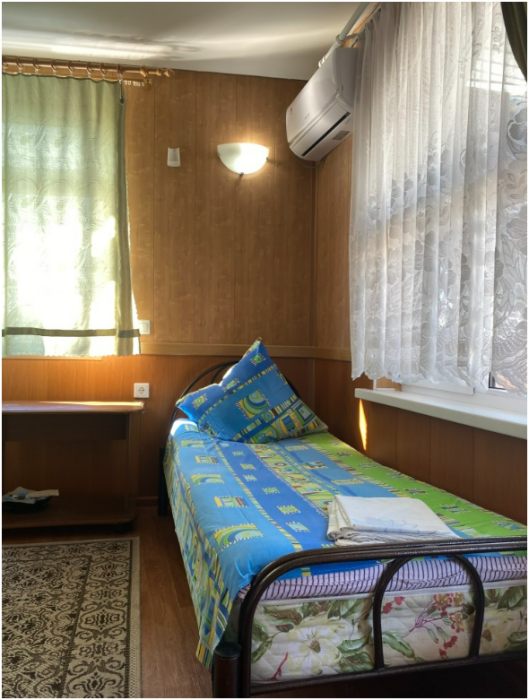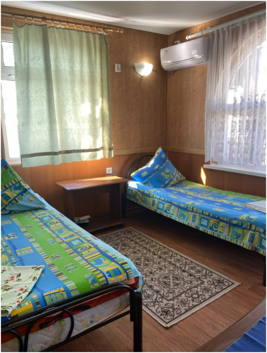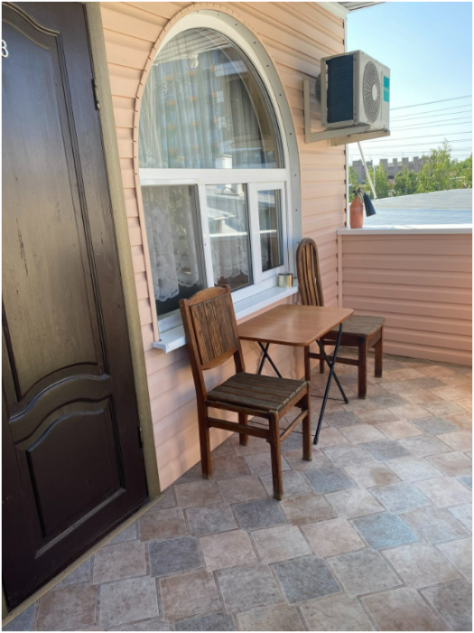 Двор закрытый с номерами разной степени комфортности и ценовой категории. Имеется оборудованная кухня для самостоятельного приготовления пищи со столиками под виноградной беседкой. Дети принимаются с любого возраста без ограничений.
