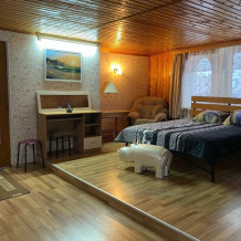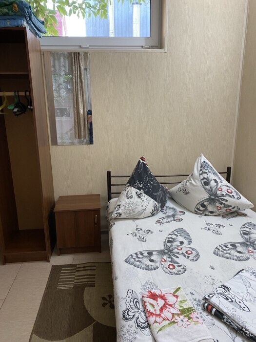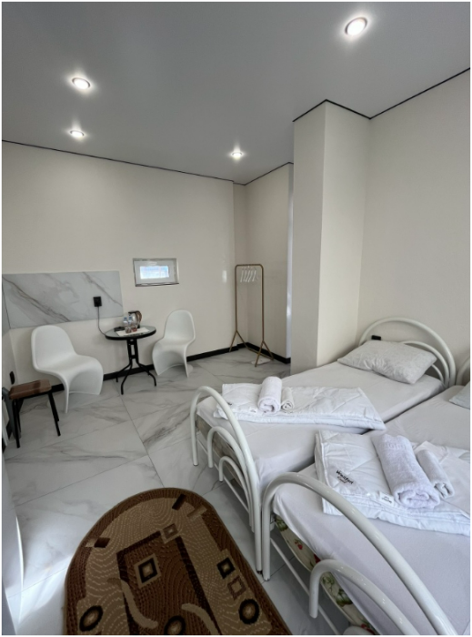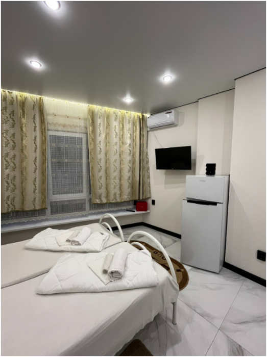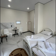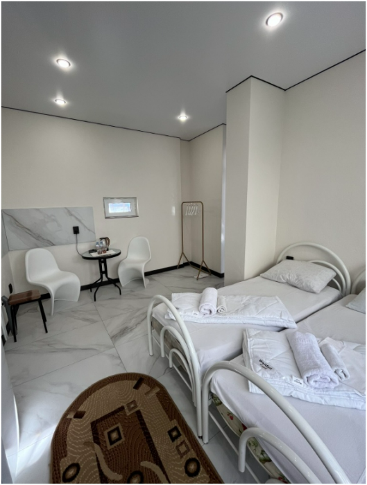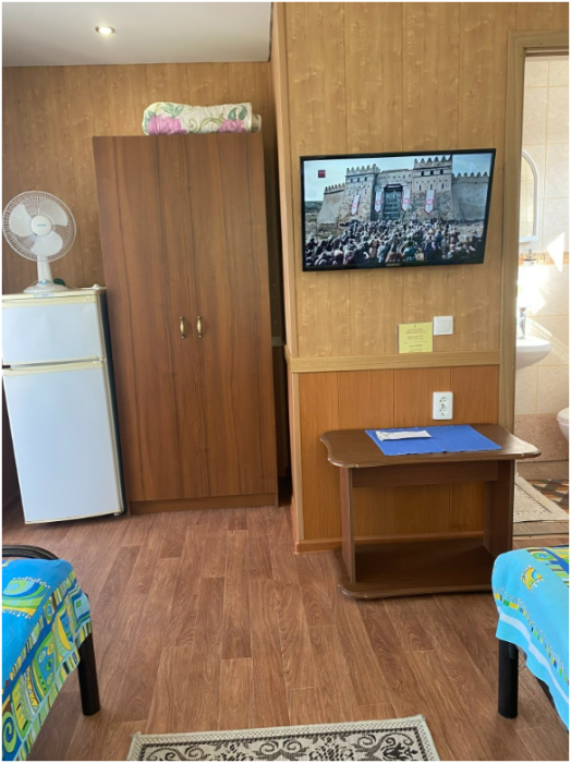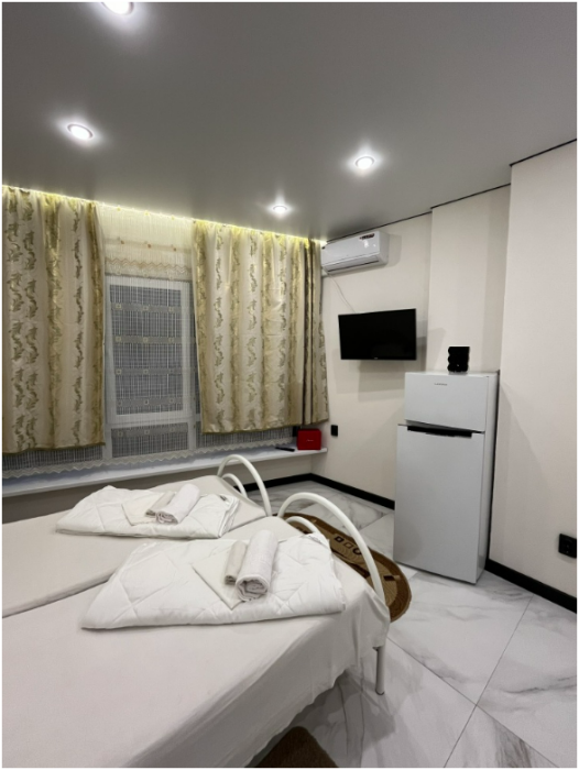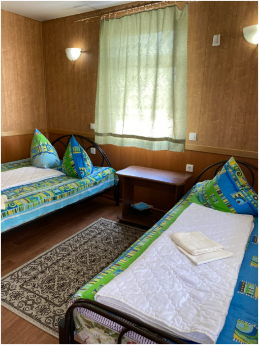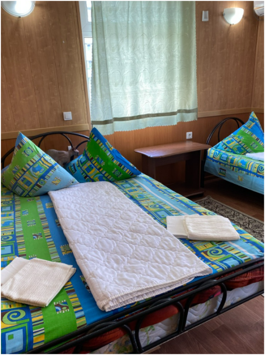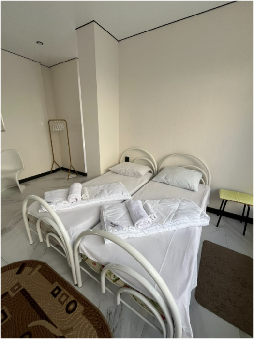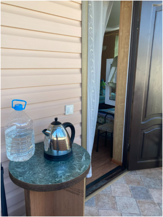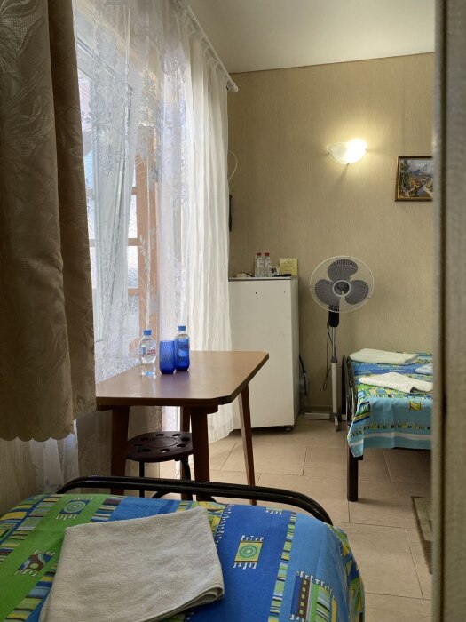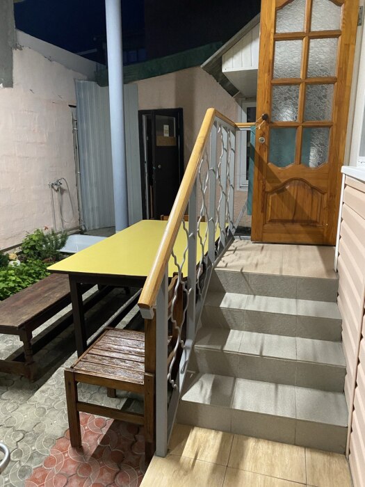Двор закрытый с номерами разной степени комфортности и ценовой категории. Имеется оборудованная кухня для самостоятельного приготовления пищи со столиками под виноградной беседкой. Дети принимаются с любого возраста без ограничений.