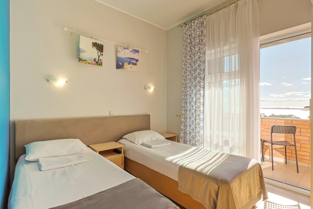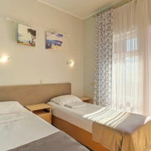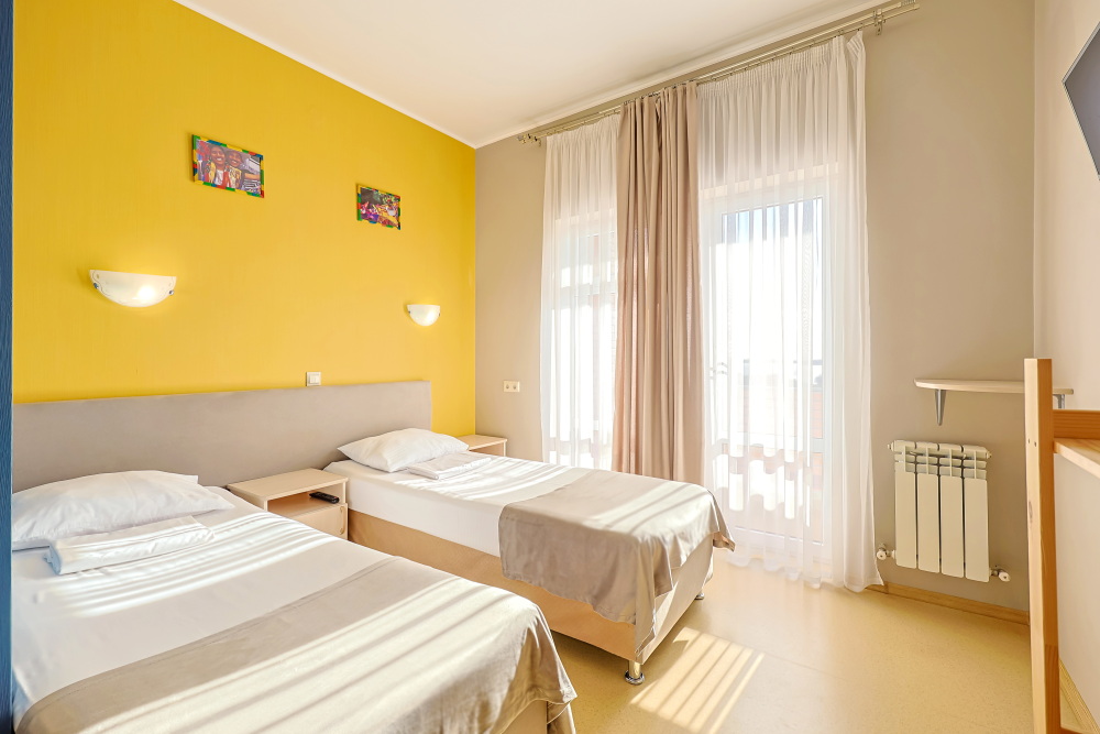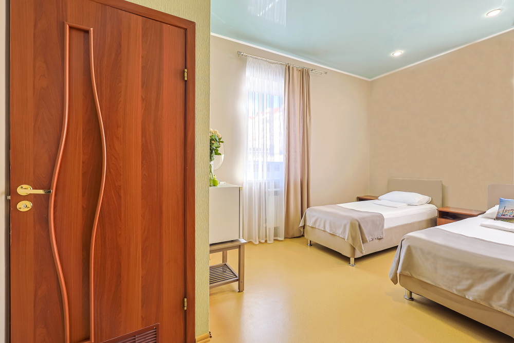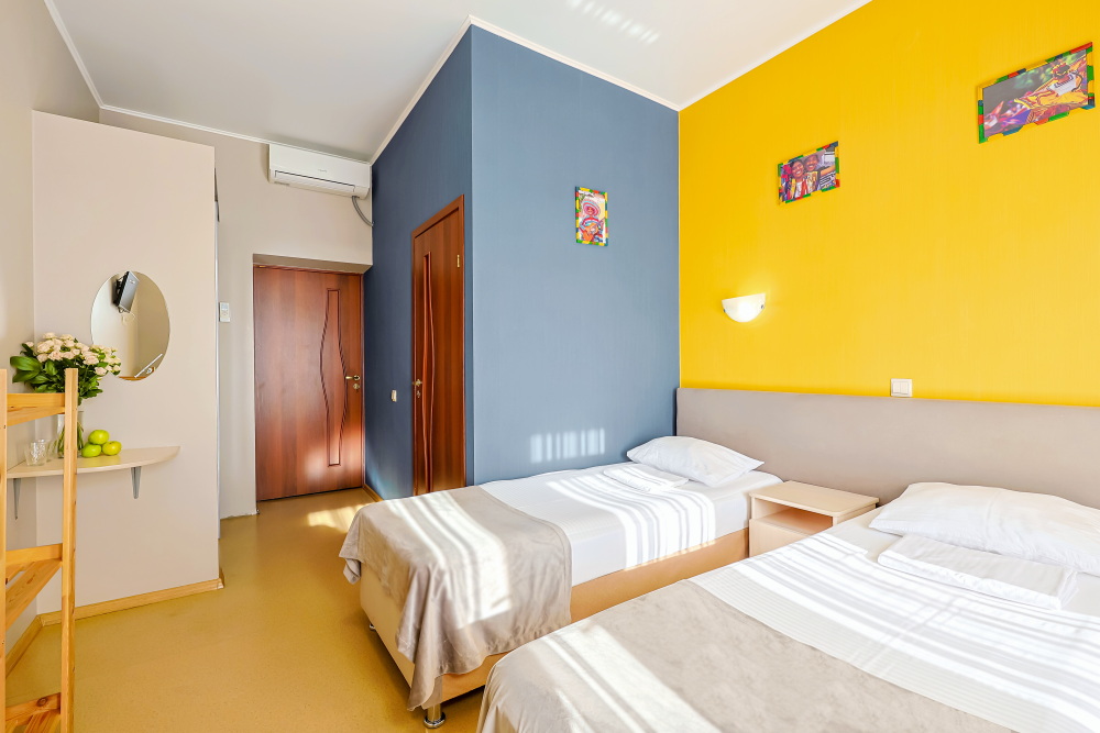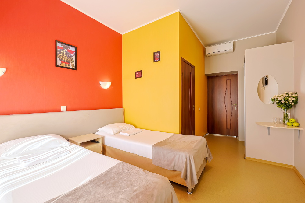 Номер оснащен: две односпальные кровати, прикроватные тумбочки, шкаф, ТВ, кондиционер, мини-холодильник, бутилированная вода. Ванная комната: душ, раковина, туалет, полотенцесушитель, фен, гигиенические принадлежности, халат, тапочки.
