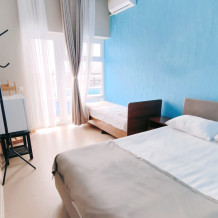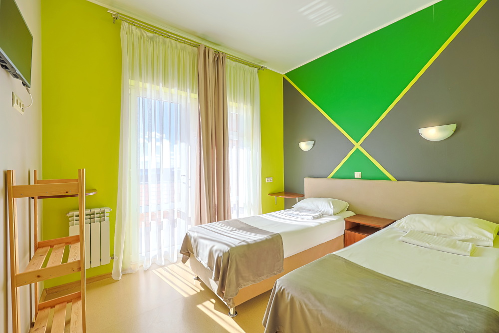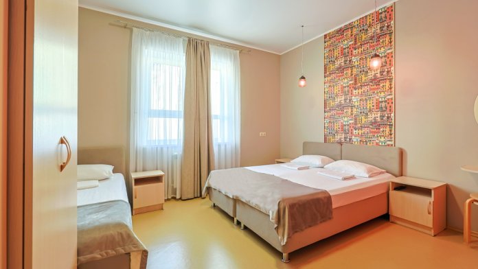 Номер оснащен: двуспальная кровать и односпальная кровать или 3 односпальные кровати, прикроватные тумбочки, шкаф, ТВ, кондиционер, мини-холодильник, бутилированная вода. Ванная комната: душ, раковина, туалет, полотенцесушитель, фен, гигиенические средства, халат, тапочки.