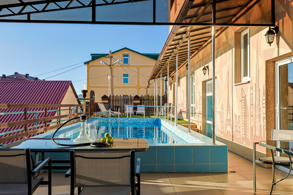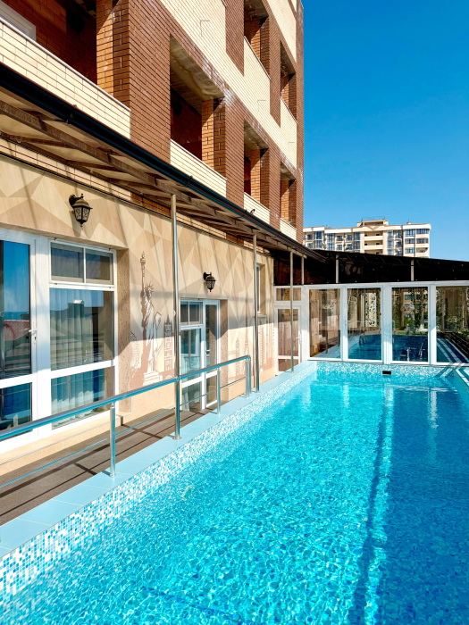- подогреваемый бассейн и банный чан на террасе и крытый бассейн в спа-зоне;
