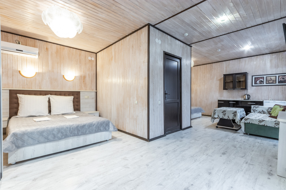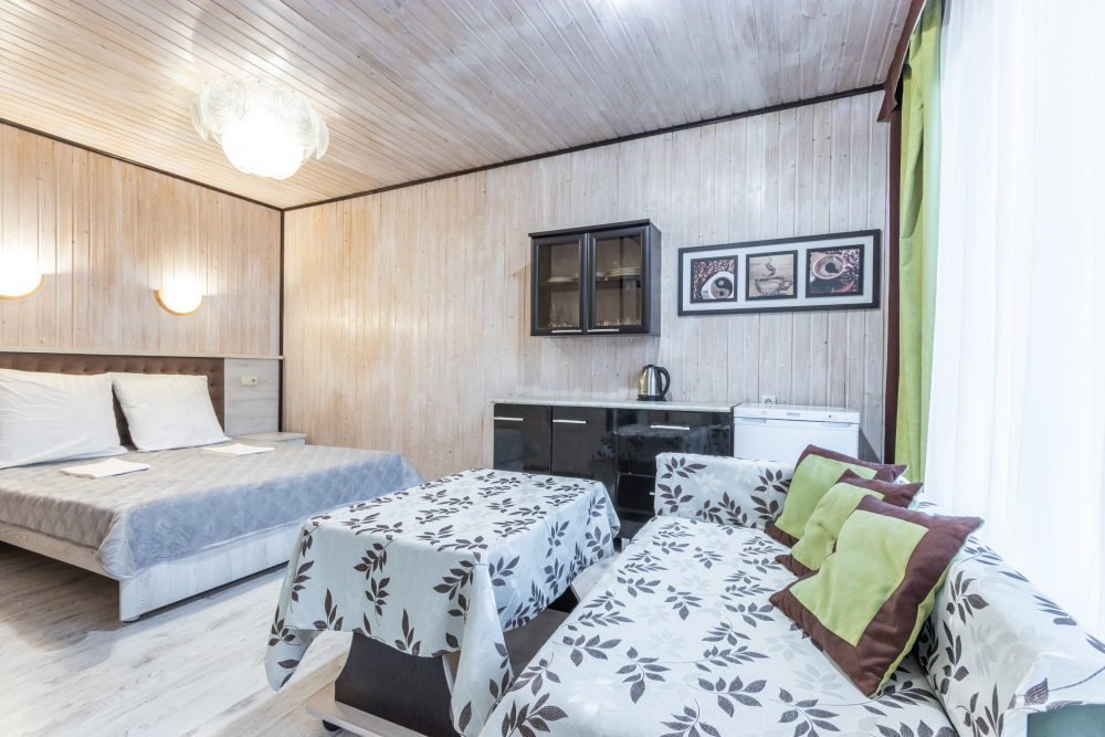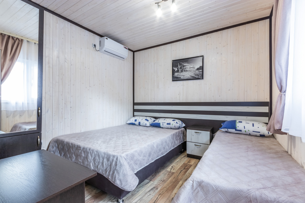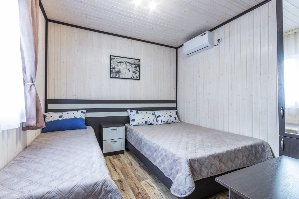 База отдыха предлагает номера категории Стандарт. Отдыхающих ждут уютные 3-местные номера. В каждом номере есть кондиционер, холодильник, телевизор, односпальная и двуспальная кровати, шкаф и тумба, а также собственная сушка для белья. Горячая и холодная вода также подается круглосуточно. У каждого домика для гостей оборудованы места для отдыха со столиками и стульями, а так же большая общая беседка с телевизором. Смена белья 1 раз в 5 дней.