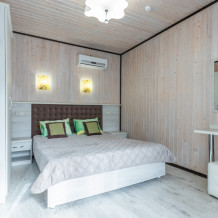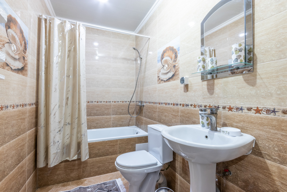 В номере: Двуспальная кровать, зеркало, пуфик, шкаф, тумбочки, ТВ, кондиционер, холодильник, совмещенный душ, туалет, полотенца все кроме пляжных, постельное белье, фен. Окна выходят во внутренний двор. Уборка 1 раз в 3 дня. Смена полотенец 1 раз в 3 дня. Смена постельного белья 1 раз в 5 дней.