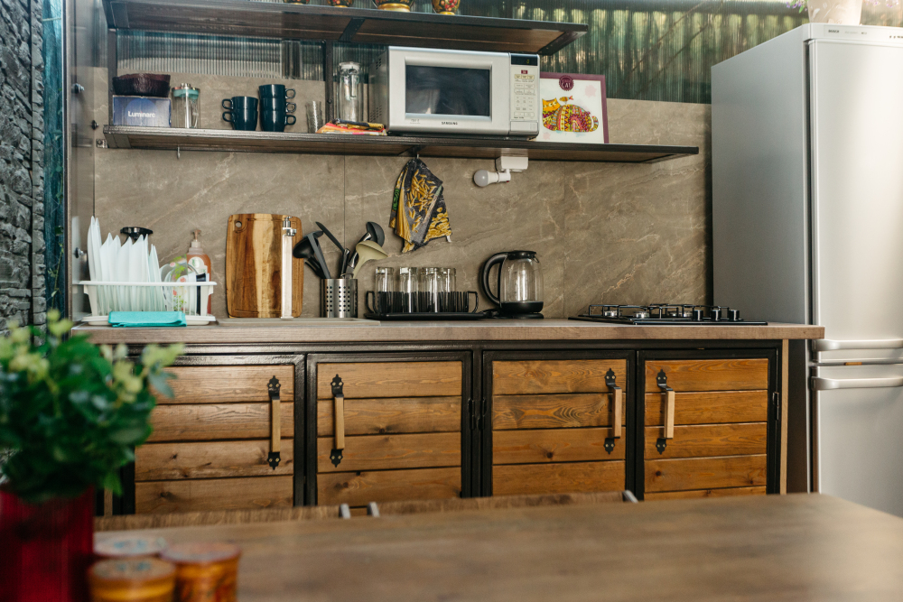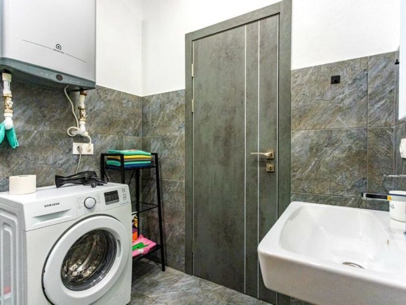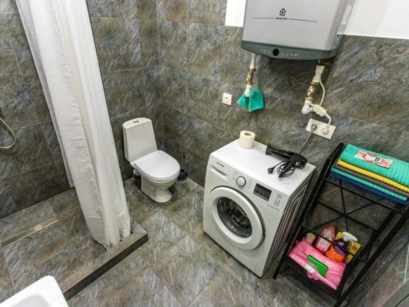 Стиральная машина, двухкамерный холодильник, газовая печь, микроволновка и все кухонные принадлежности в наличии.