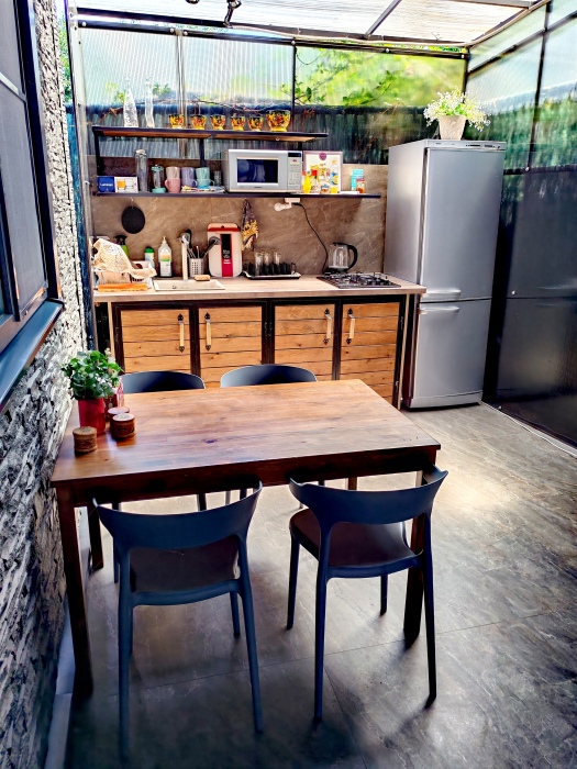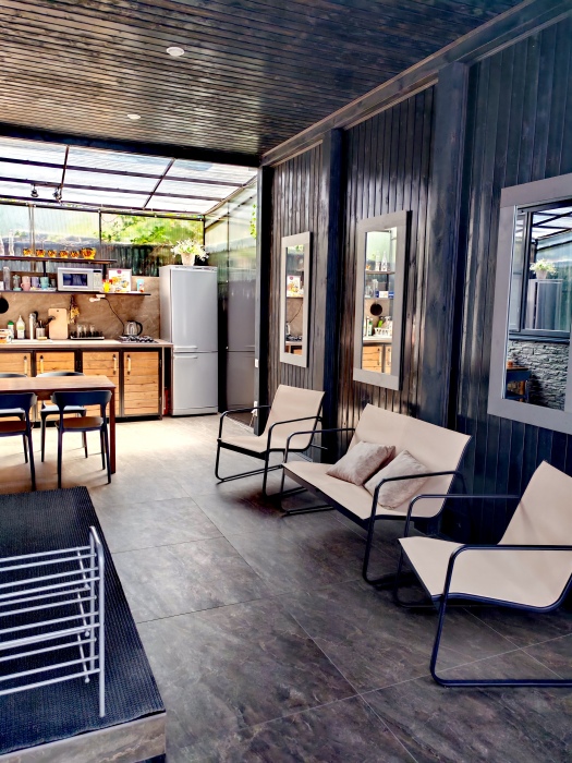 Сдается половина дома (трехкомнатный люкс) площадью 65 кв м, есть уютный дворик с летней кухней. Дом расположен в 5 минутах от центральной набережной. Пляж «Сады Морей» в 15 минутах от дома.