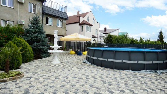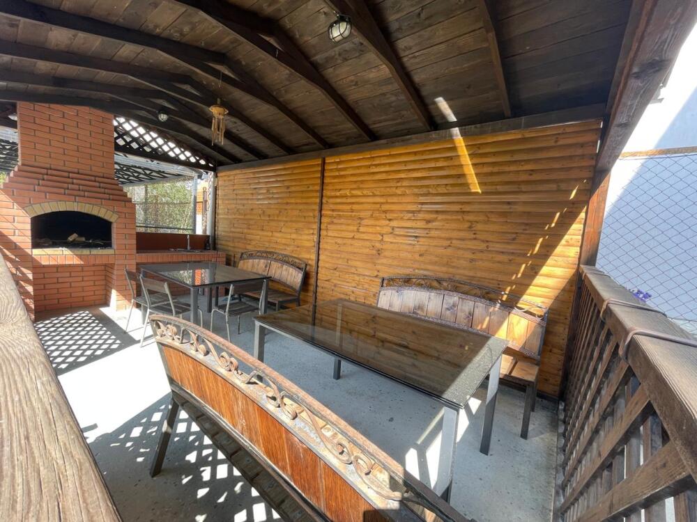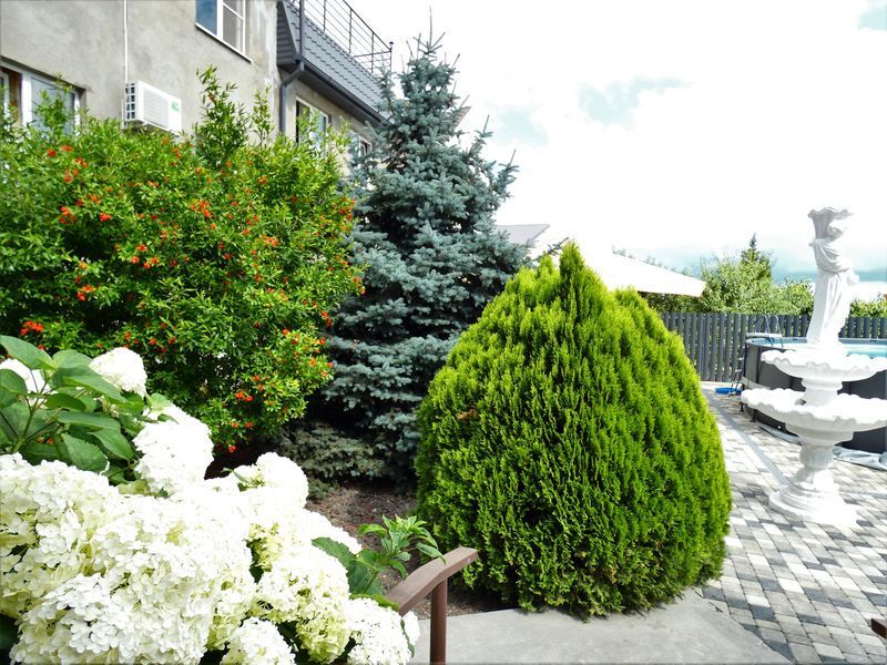 На территории двора растут хвойные деревья и цветы, есть мангальная зона, зона отдыха, небольшой бассейн, игровая зона с теннисным столом, кухня, Wi-Fi, бесплатная автостоянка.