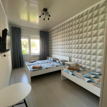 Для проживания гостям предлагаются номера категории «Эконом» разной вместимости. В номерах имеется все необходимое для комфортного проживания. В каждом номере есть кондиционер и телевизор. Душ и туалет расположены на этаже. Чисто, уютно, по-домашнему.