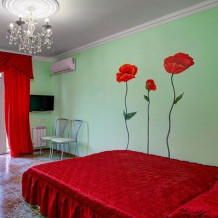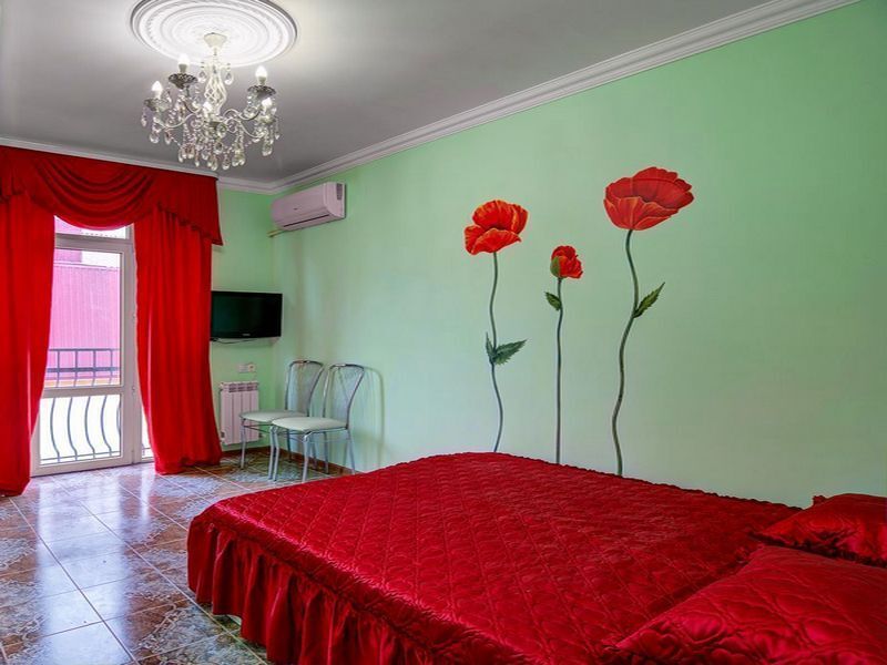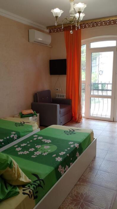 В гостевом доме сдается всего 5 номеров. Каждый из них оборудован собственным санузлом с душем, хорошей мебелью, кондиционером, телевизором с цифровыми каналами, беспроводным интернетом. Особый шарм комнатам придают французские балкончики.