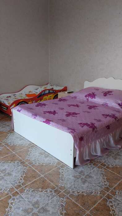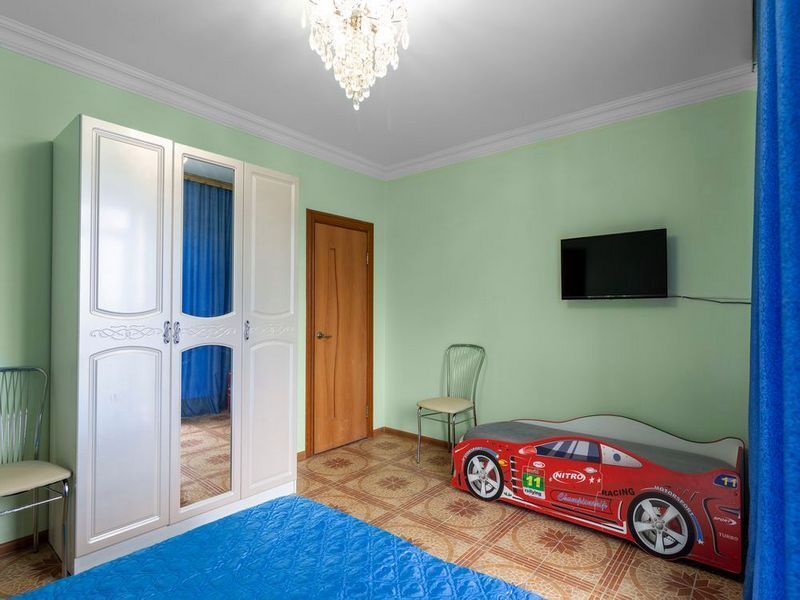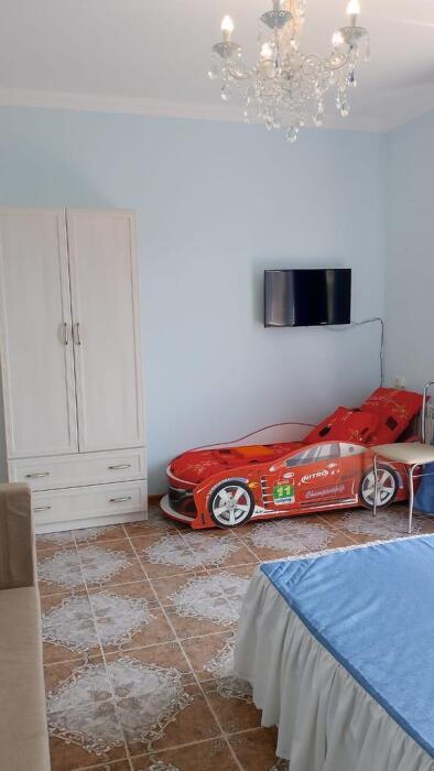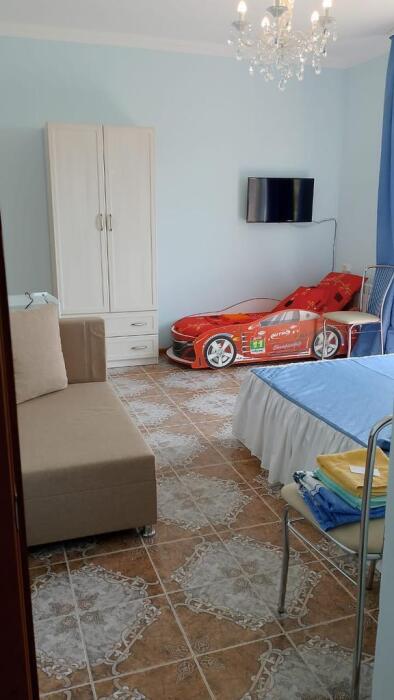 Номер на 4-х человек. В номере двуспальная кровать, детская кровать, раскладной диван, шкаф, холодильник, стулья, телевизор, кондиционер, санузел ( душ, туалет) совмещён.