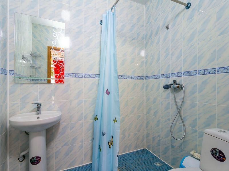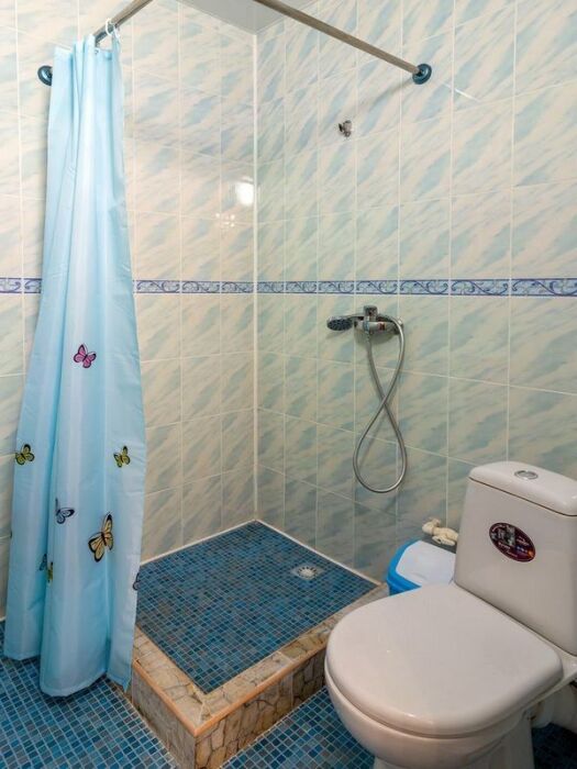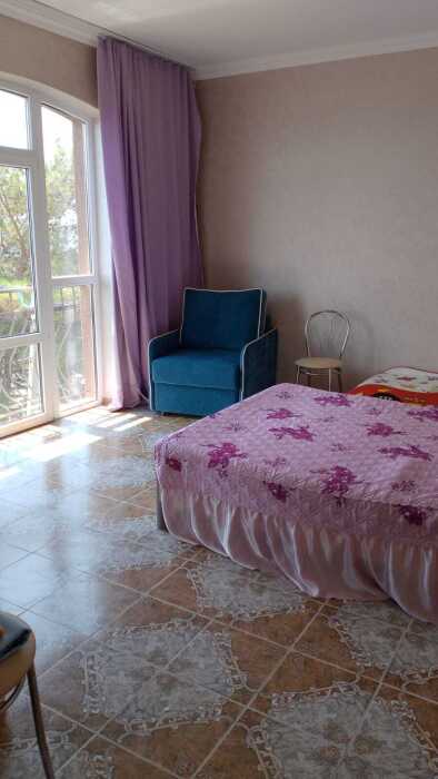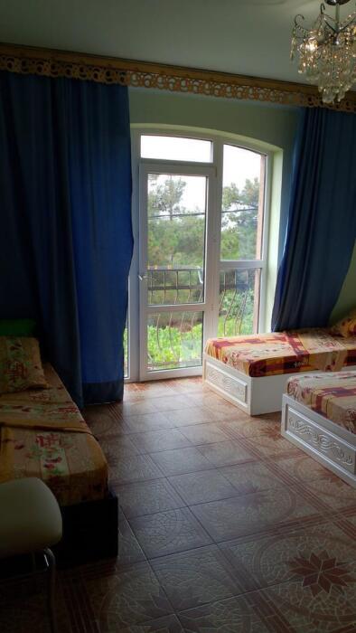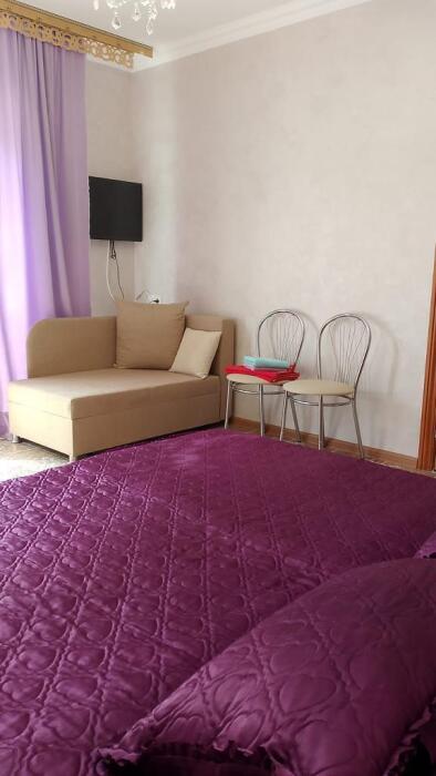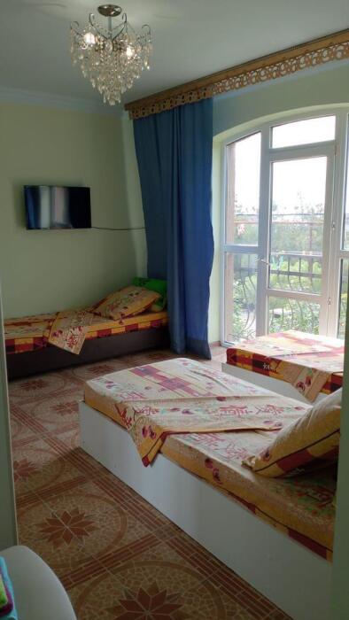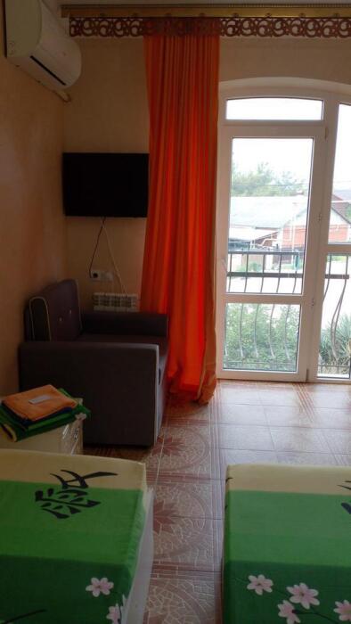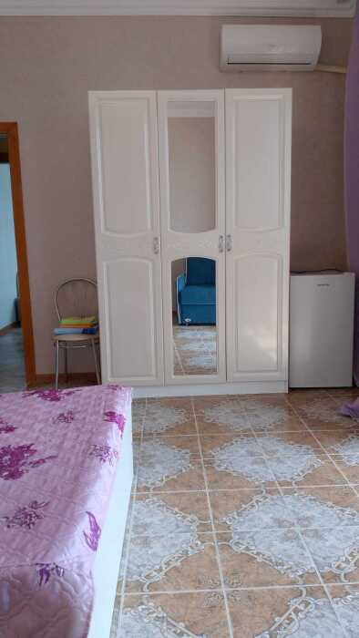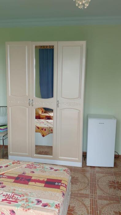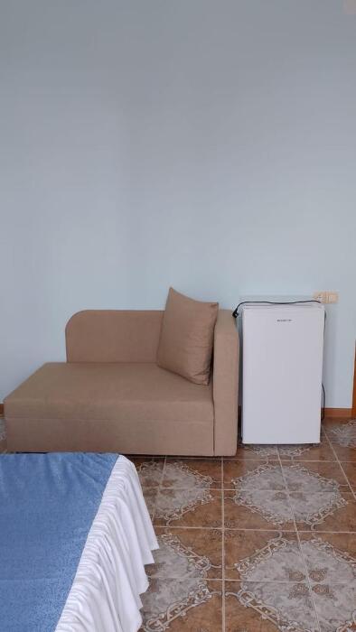 Номер на 3-х человек. В номере двуспальная кровать, раскладной диван, шкаф, холодильник, стулья, телевизор, кондиционер, санузел ( душ, туалет) совмещён.