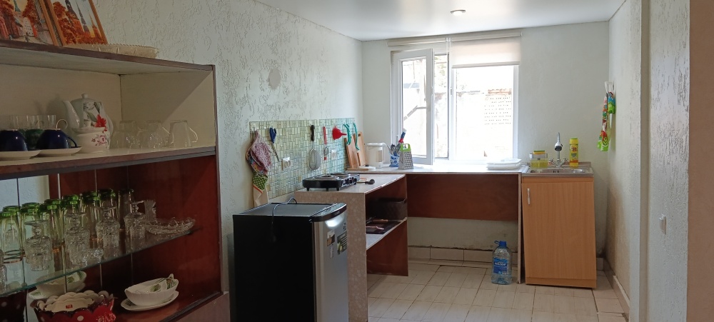 В доме есть три комнаты для гостей, кухня, гостиная с обеденным столом, душевая комната с совмещённым санузлом.