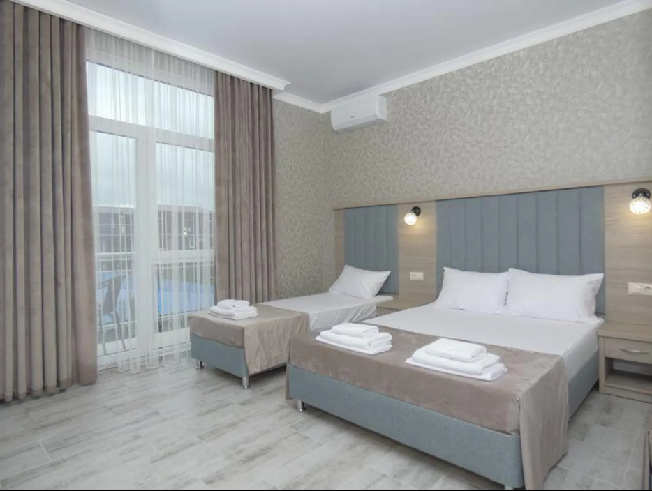Отель «Infinity» находится в 800 метрах от моря. Все в шаговой доступности: центральная улица, детская площадка, Магнит, банк, продуктовый рынок и т. д.