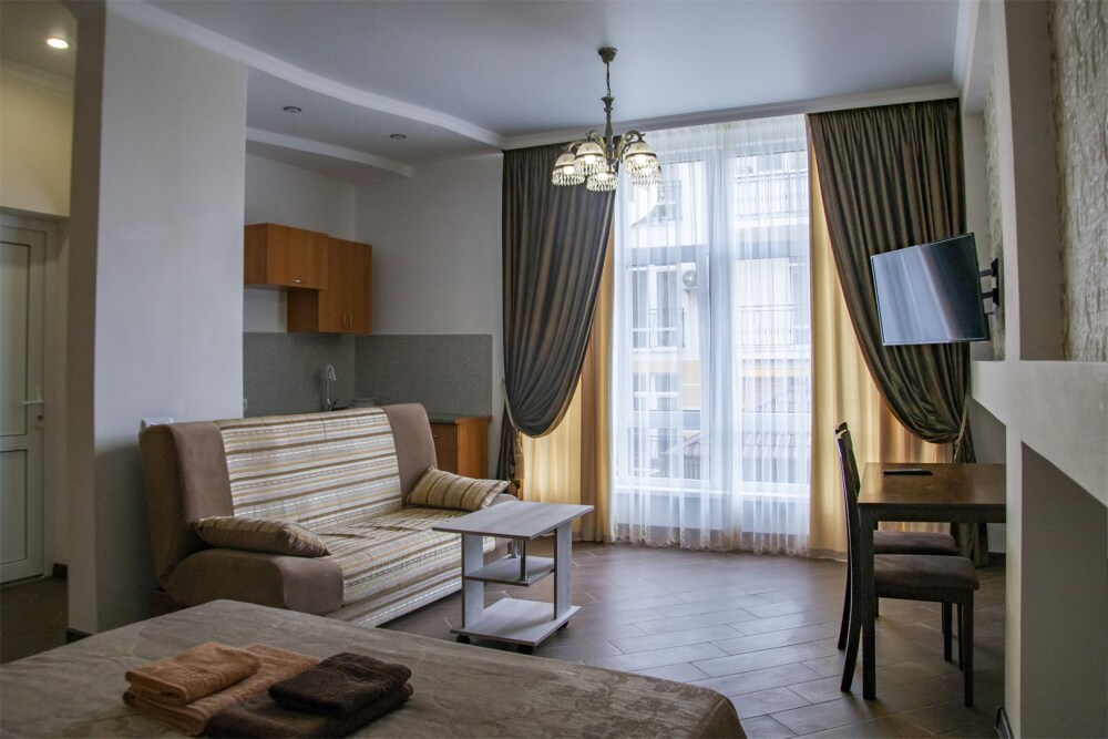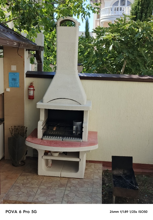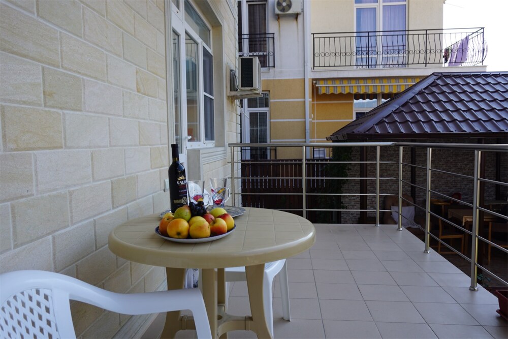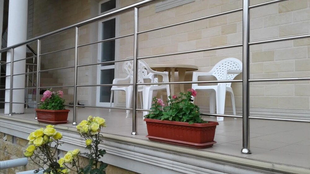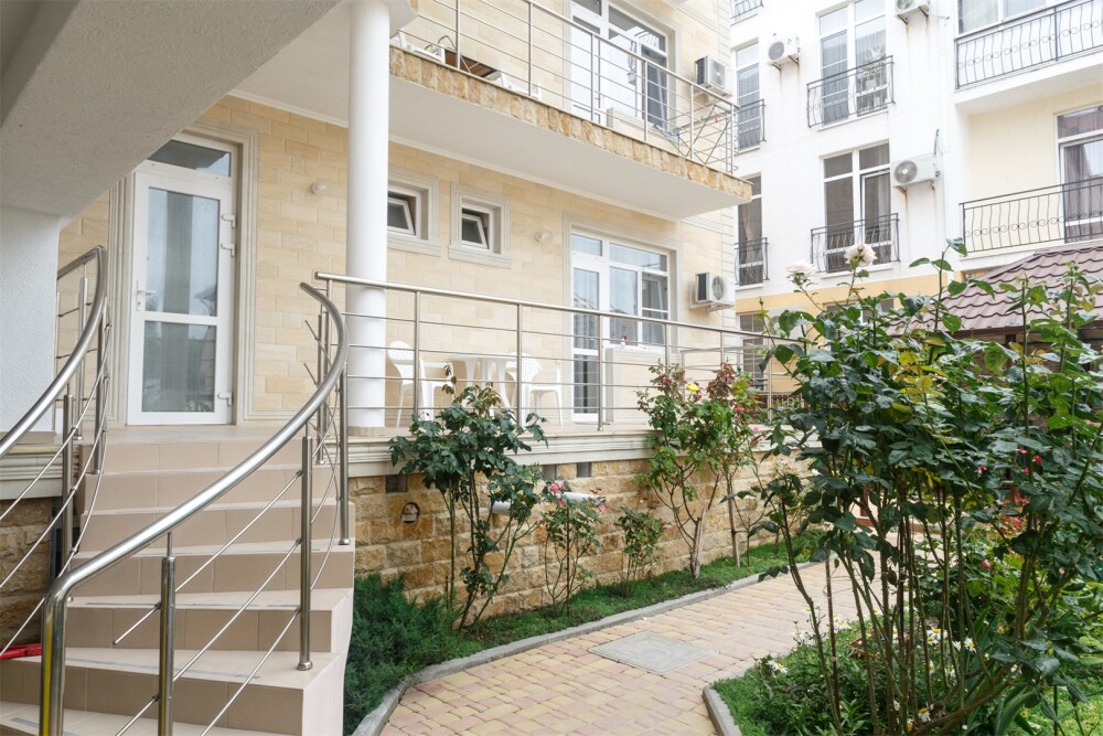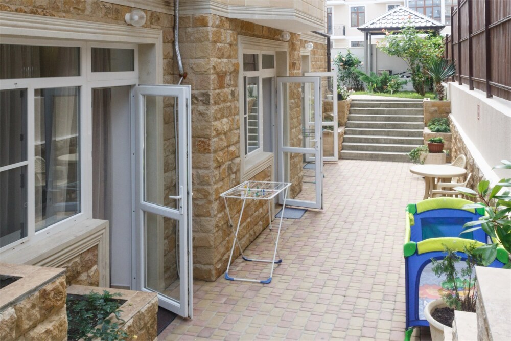 На территории для гостей работает бесплатный Wi-Fi. Двор очень зеленый, на территории клумба с цветами, есть газон и экзотические деревья. Для гостей доступна уютная беседка с кухней и мангал для приготовления шашлыка. К услугам гостей принадлежности для барбекю. Автопарковка на придомовой территории.