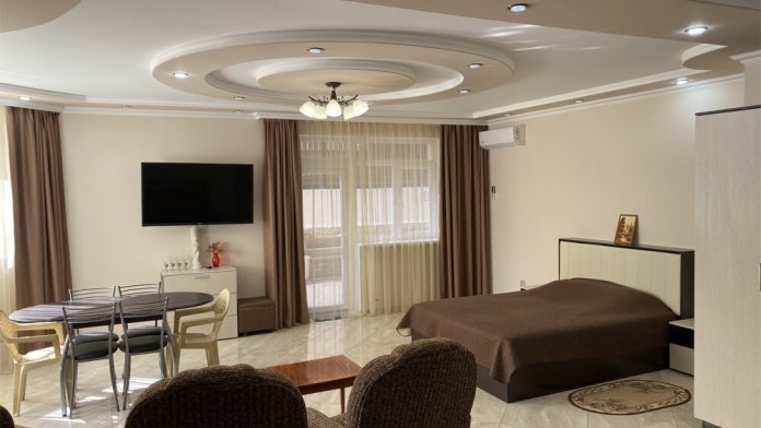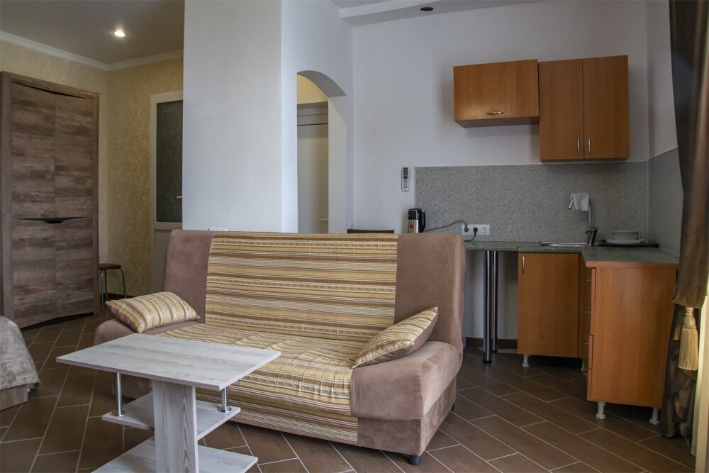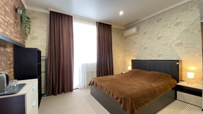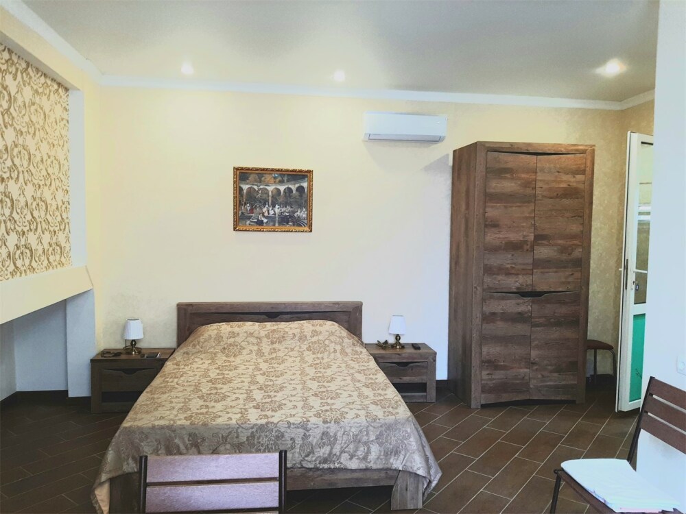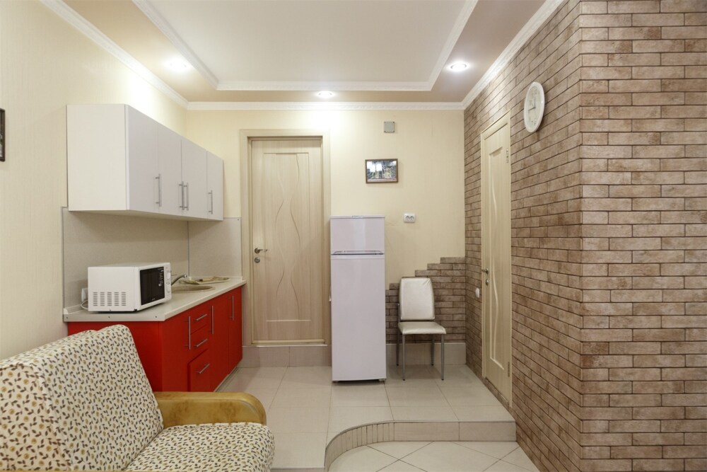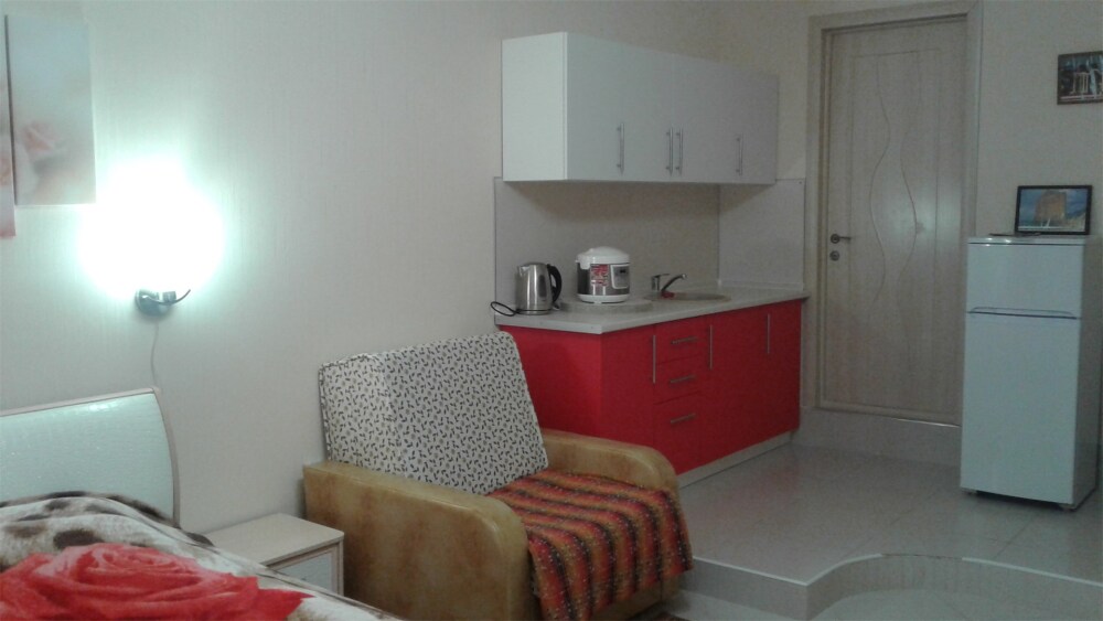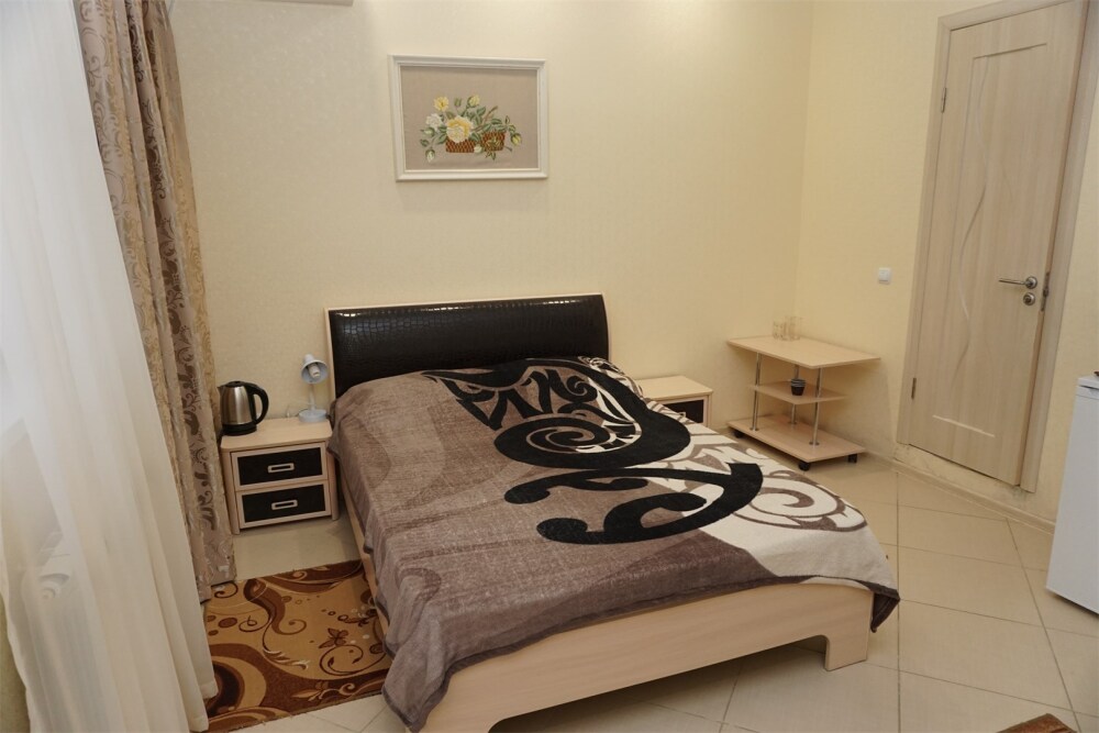 В номере есть мини-кухня.В номерах есть сплит-система, телевизор, эл. чайник, вся необходимая мебель и отдельный санузел+душевая. На территории для гостей работает бесплатный Wi-Fi. Парковка автомобиля на придомовой территории. Для гостей доступна беседка с кухней, где можно самостоятельно готовить и мангал. В шаговой доступности от дома есть магазины « ПЯТЕРОЧКА»,«МАГНИТ» столовая, кафе, банкоматы, аптеки, и т.д.