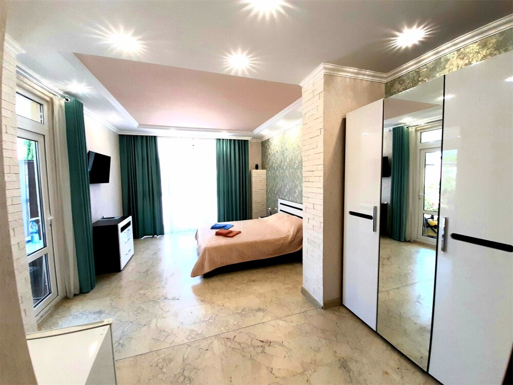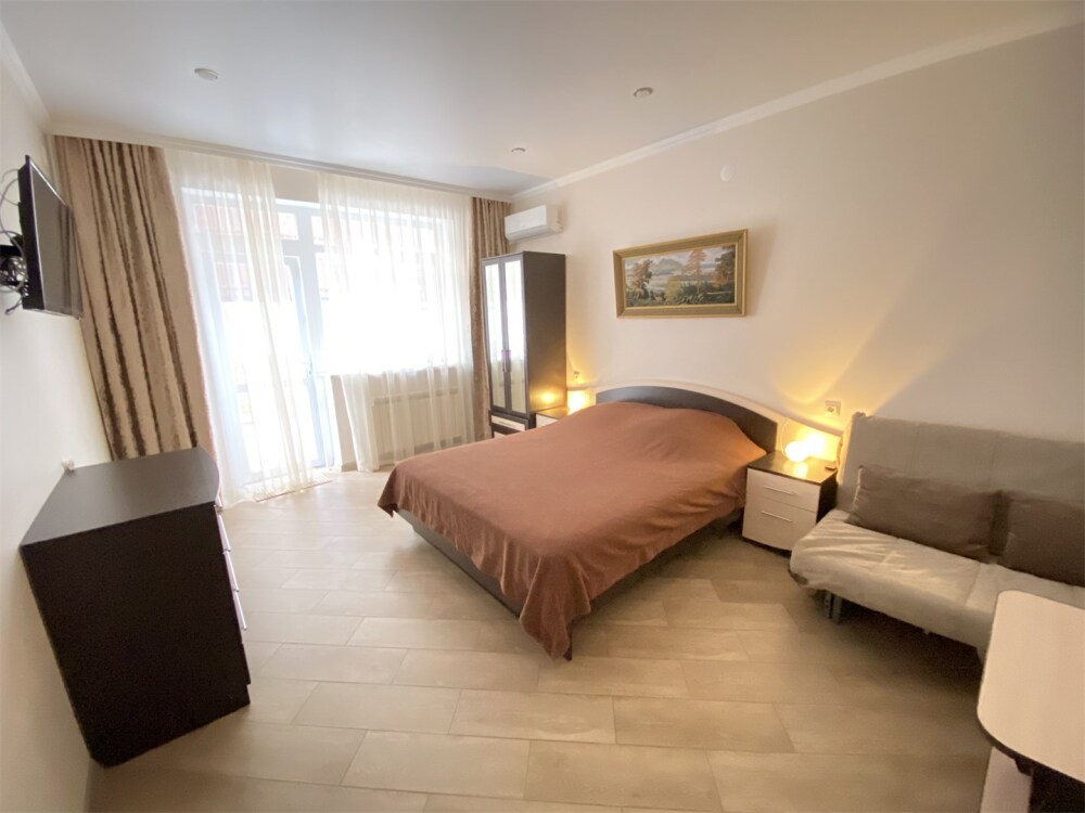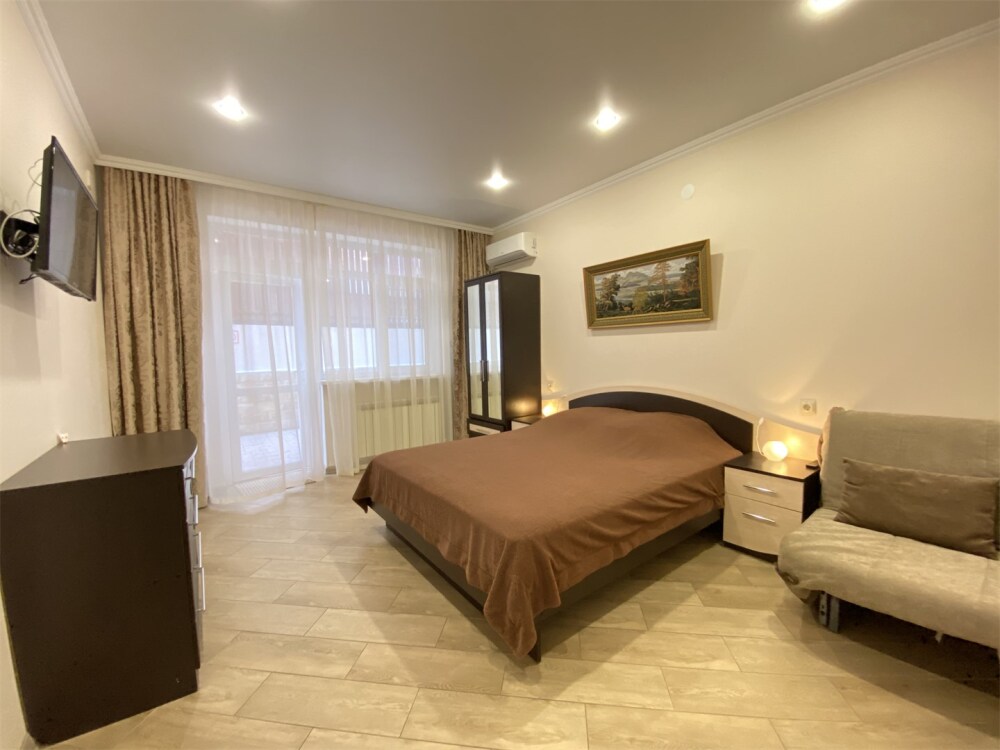В номере есть мини-кухня. В номерах есть сплит-система, телевизор, эл. чайник, вся необходимая мебель и отдельный санузел+душевая. На территории для гостей работает бесплатный Wi-Fi. Парковка автомобиля на придомовой территории. Для гостей доступна беседка с кухней, где можно самостоятельно готовить и мангал. В шаговой доступности от дома есть магазины « ПЯТЕРОЧКА»,«МАГНИТ» столовая, кафе, банкоматы, аптеки, и т.д.