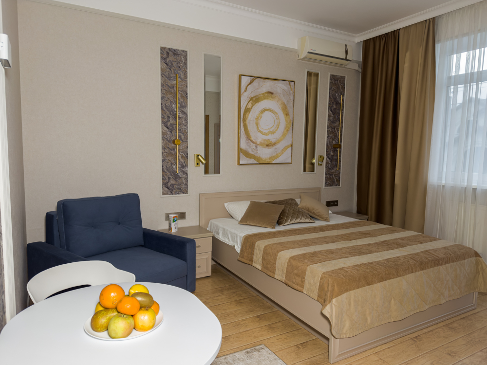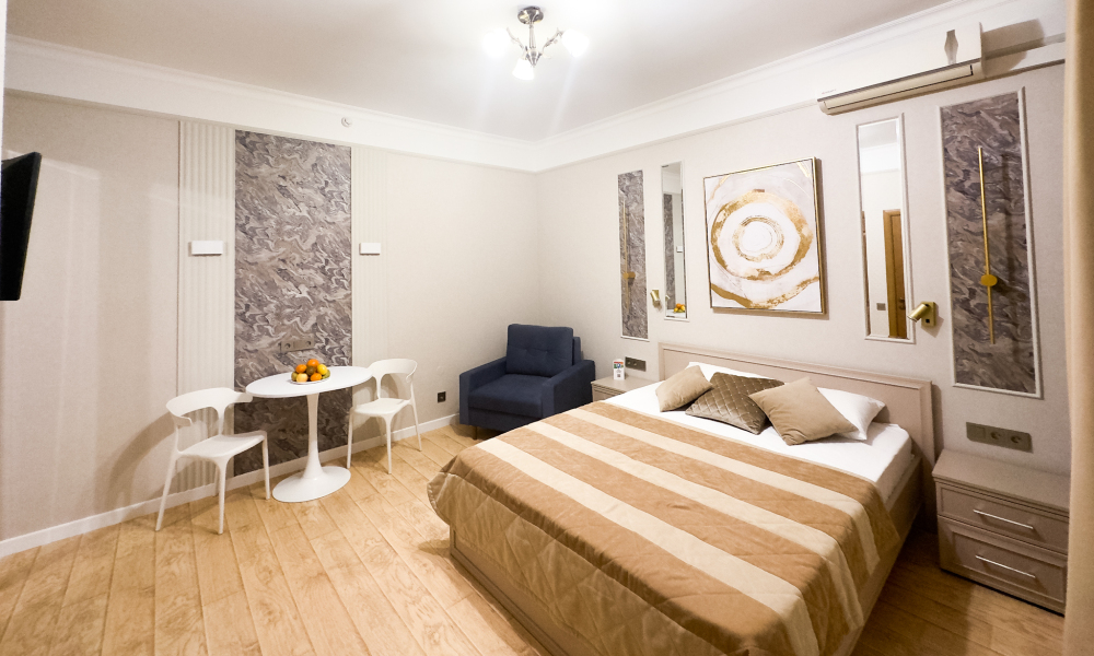К размещению предлагаются номера разных категорий и вместимости, со всем необходимым для комфортного отдыха. В каждом номере есть система кондиционирования, телевизор, холодильник, вся необходимая мебель и отдельный санузел с душевой. В некоторых номерах есть мини-кухни.