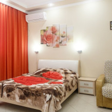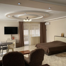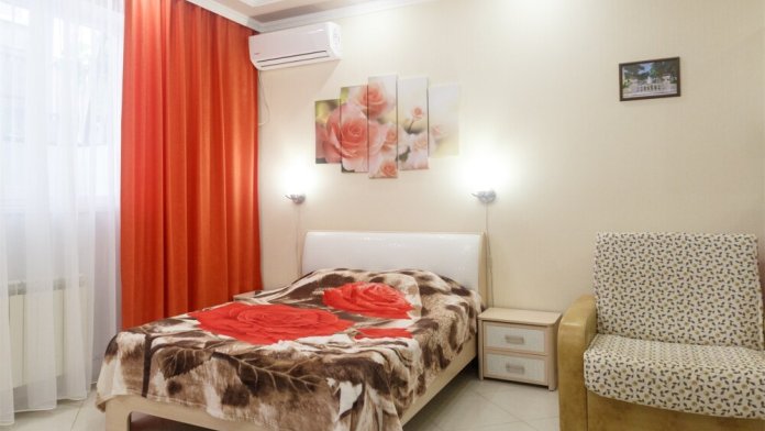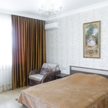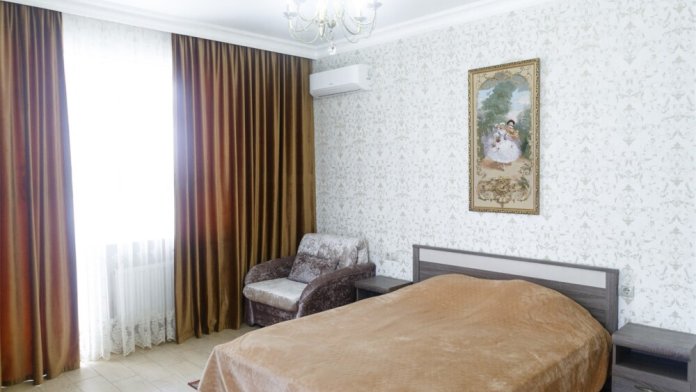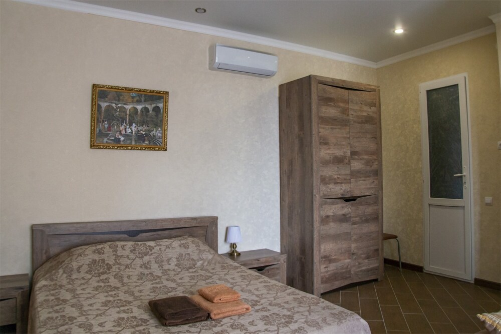 ВВ номерах есть сплит-система, телевизор, эл. чайник, вся необходимая мебель и отдельный санузел+душевая. На территории для гостей работает бесплатный Wi-Fi. Парковка автомобиля на придомовой территории. Для гостей доступна беседка с кухней, где можно самостоятельно готовить и мангал. В шаговой доступности от дома есть магазины « ПЯТЕРОЧКА»,«МАГНИТ» столовая, кафе, банкоматы, аптеки, и т.д.