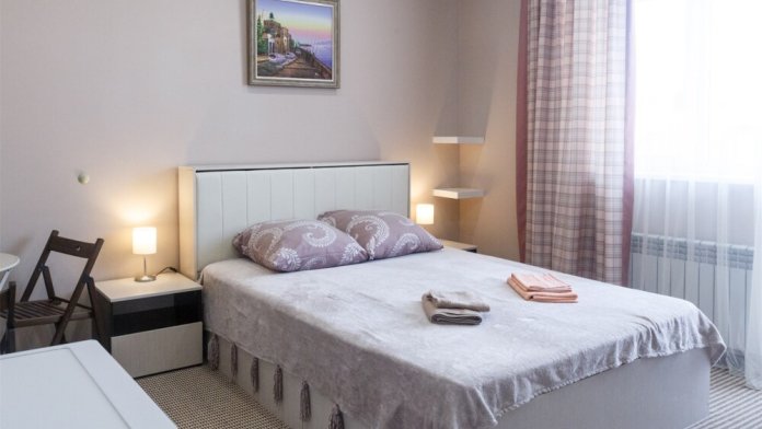 В номерах есть сплит-система, телевизор, эл. чайник, вся необходимая мебель и отдельный санузел+душевая. На территории для гостей работает бесплатный Wi-Fi. Парковка автомобиля на придомовой территории. Для гостей доступна беседка с кухней, где можно самостоятельно готовить и мангал. В шаговой доступности от дома есть магазины « ПЯТЕРОЧКА»,«МАГНИТ» столовая, кафе, банкоматы, аптеки, и т.д.