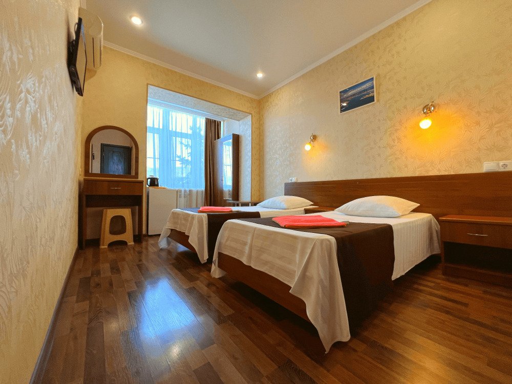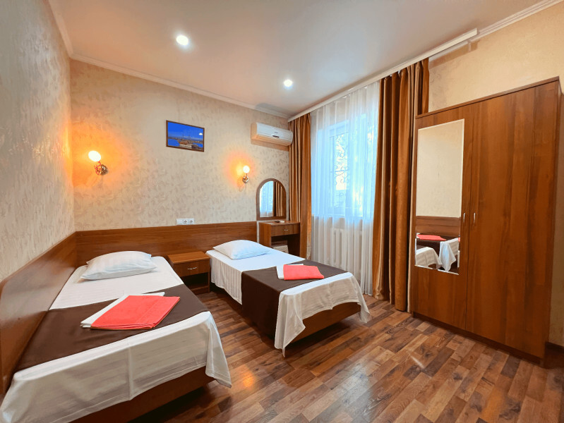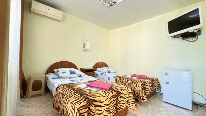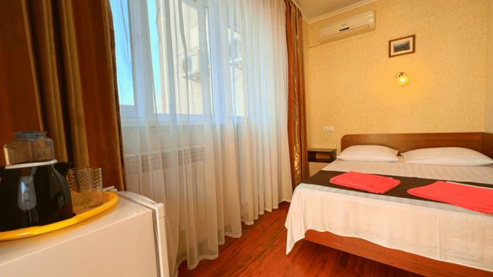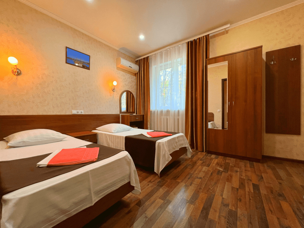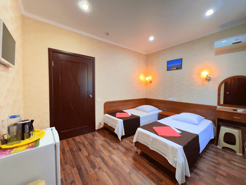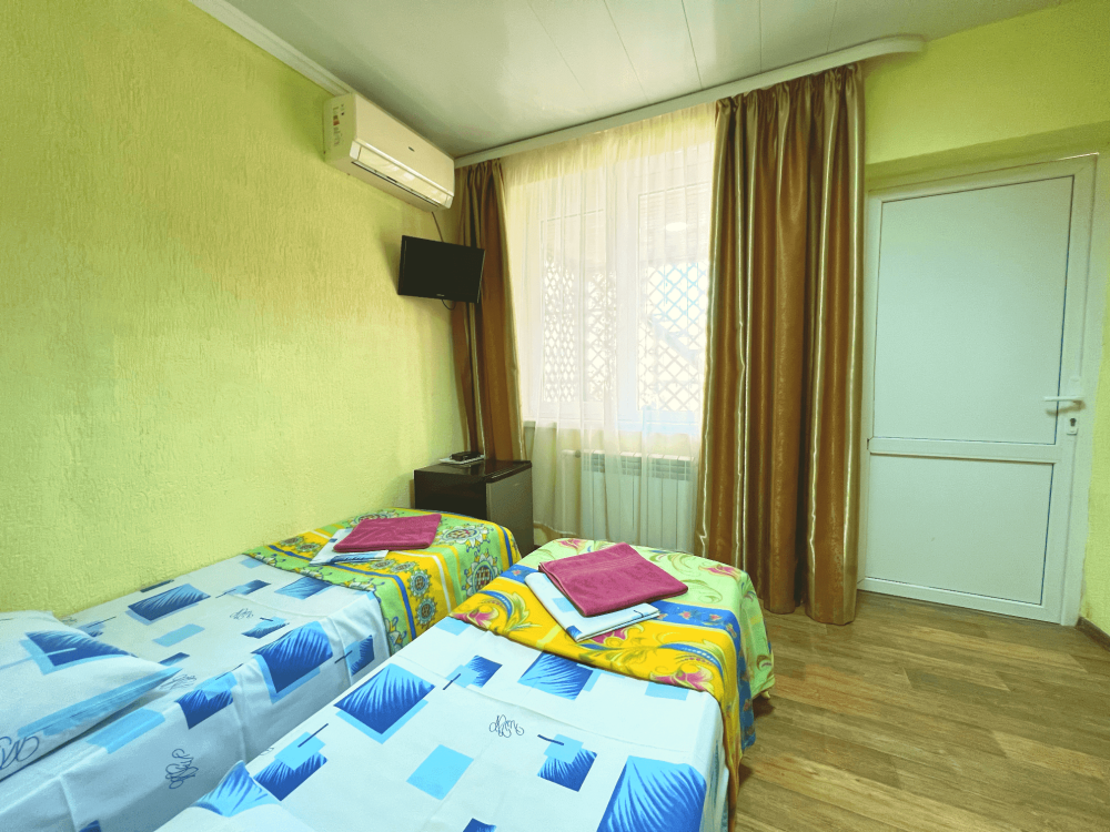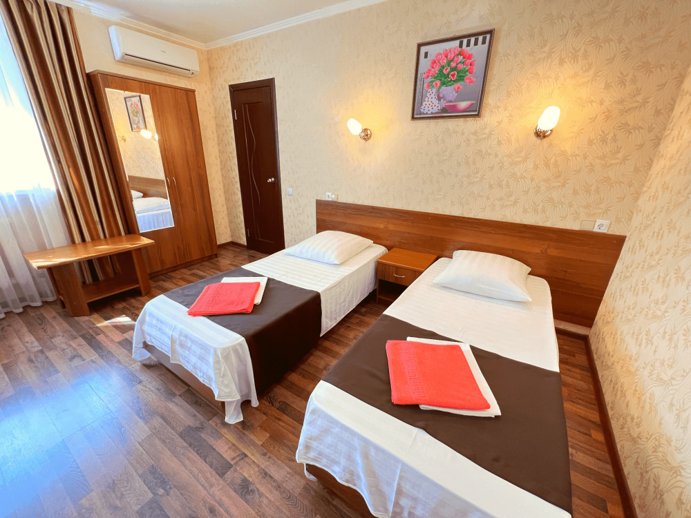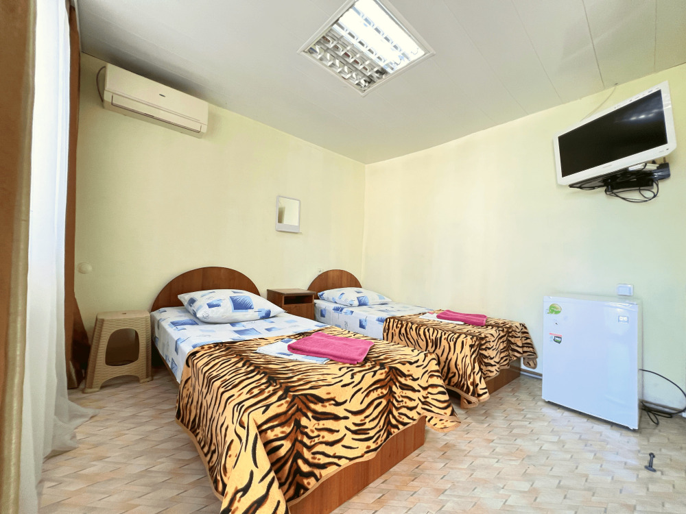Все номера оборудованы кондиционерами, телевизорами, собственными санузлами с душем.