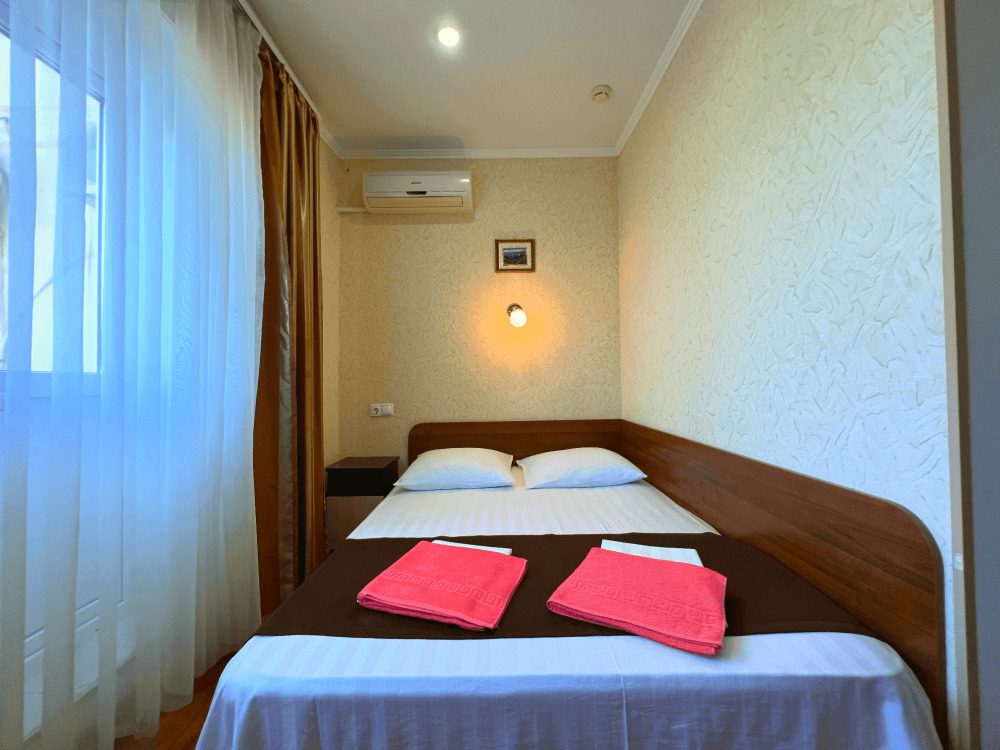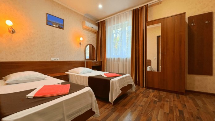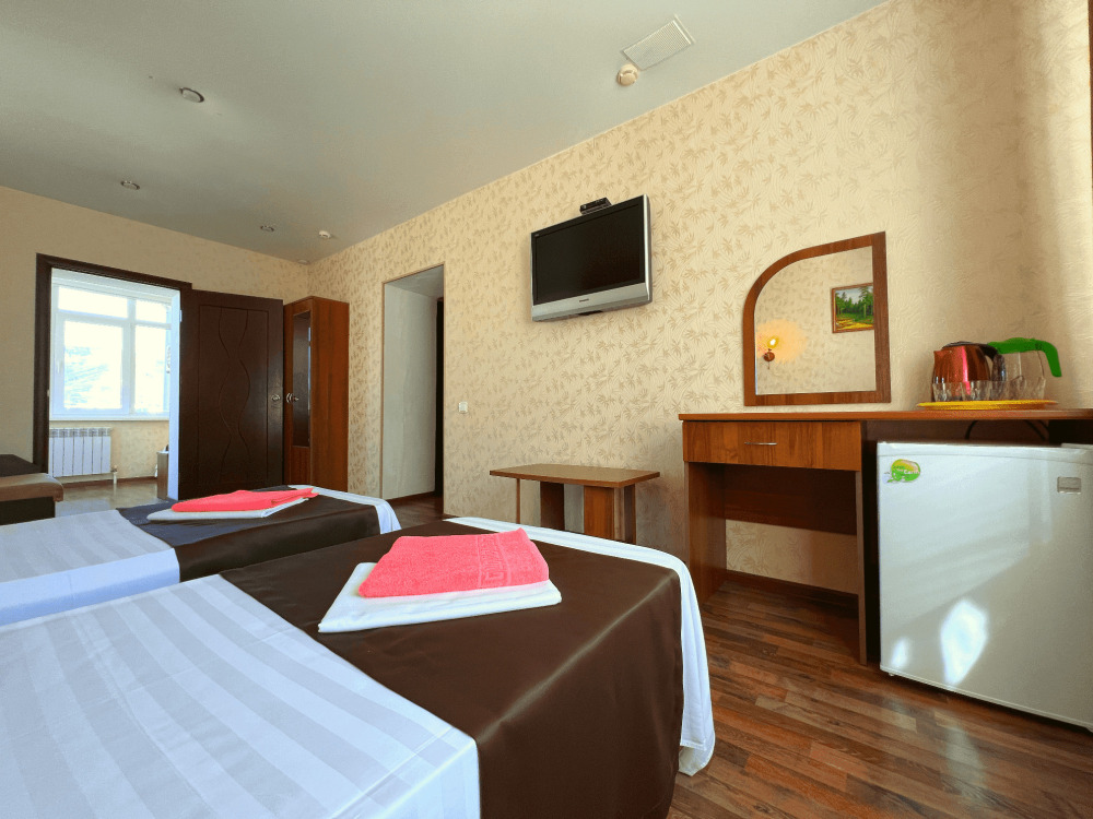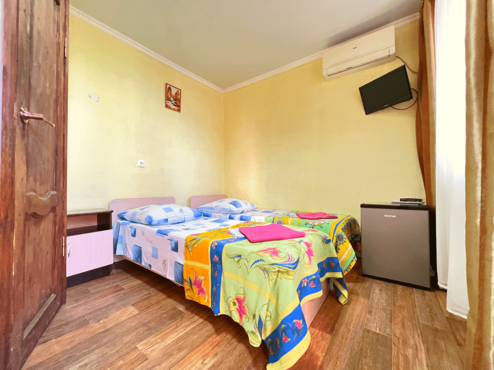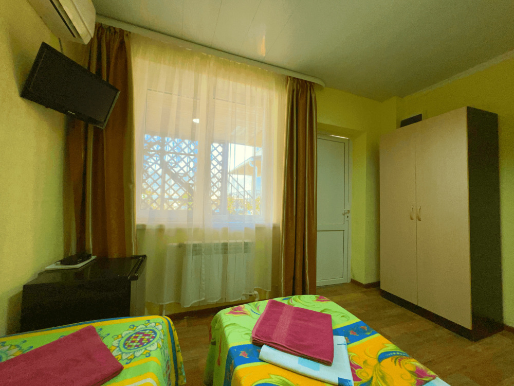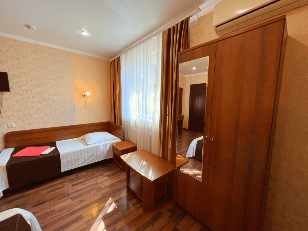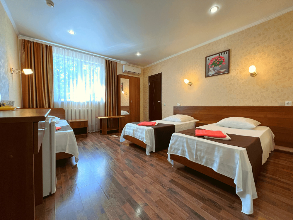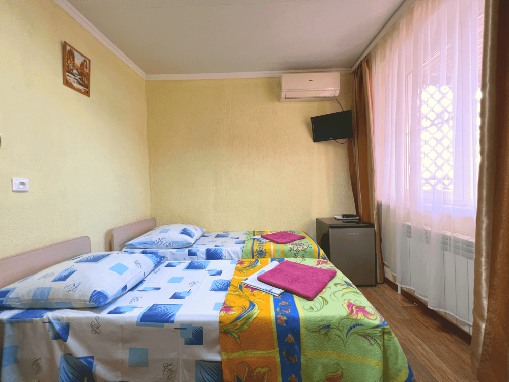 Все номера оборудованы кондиционерами, телевизорами, собственными санузлами с душем.