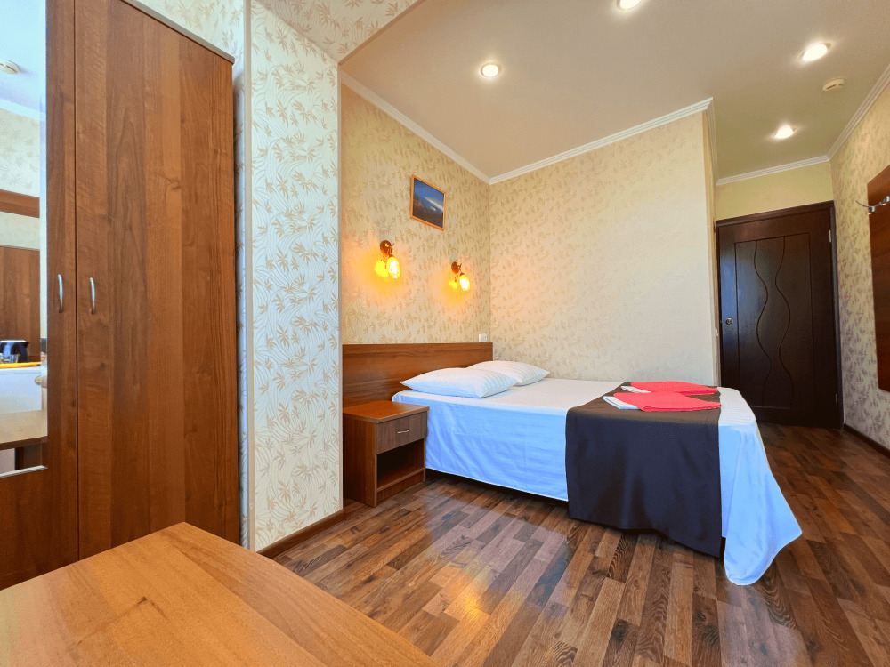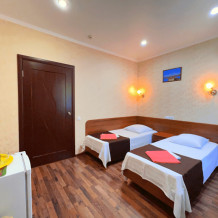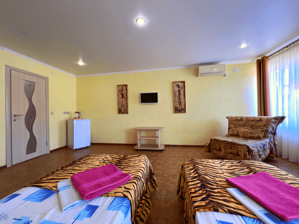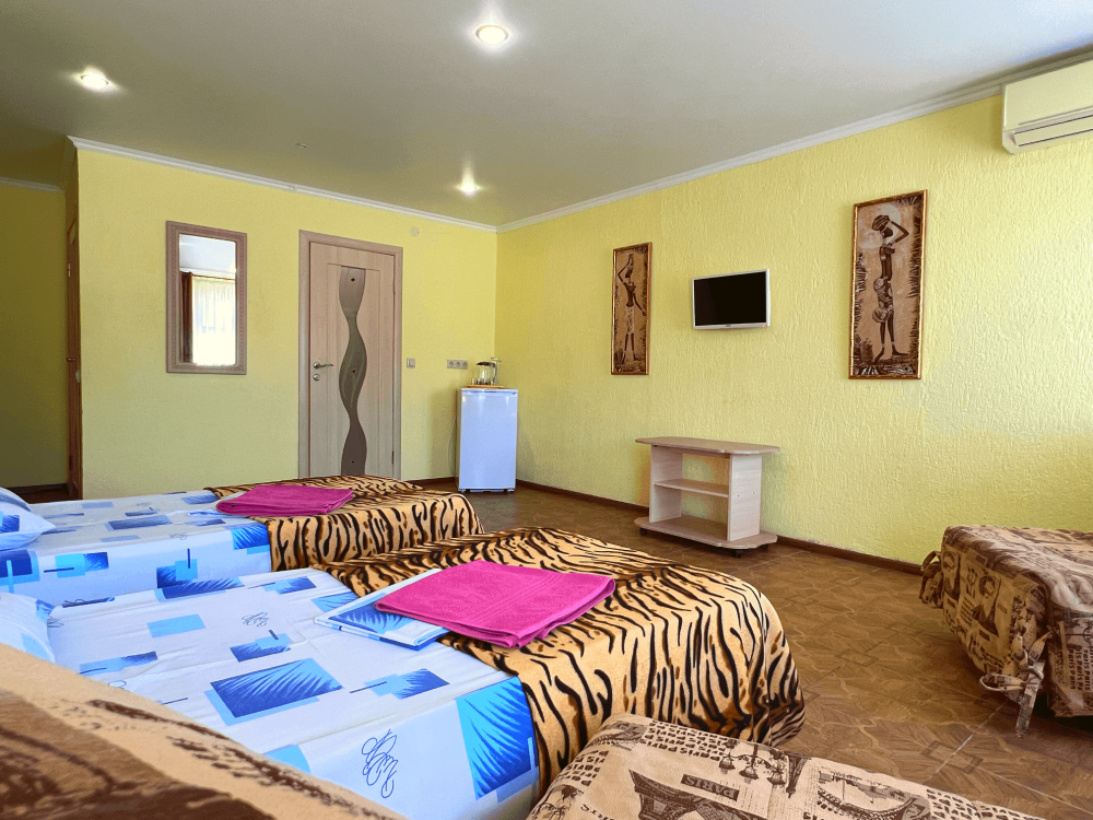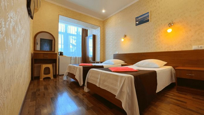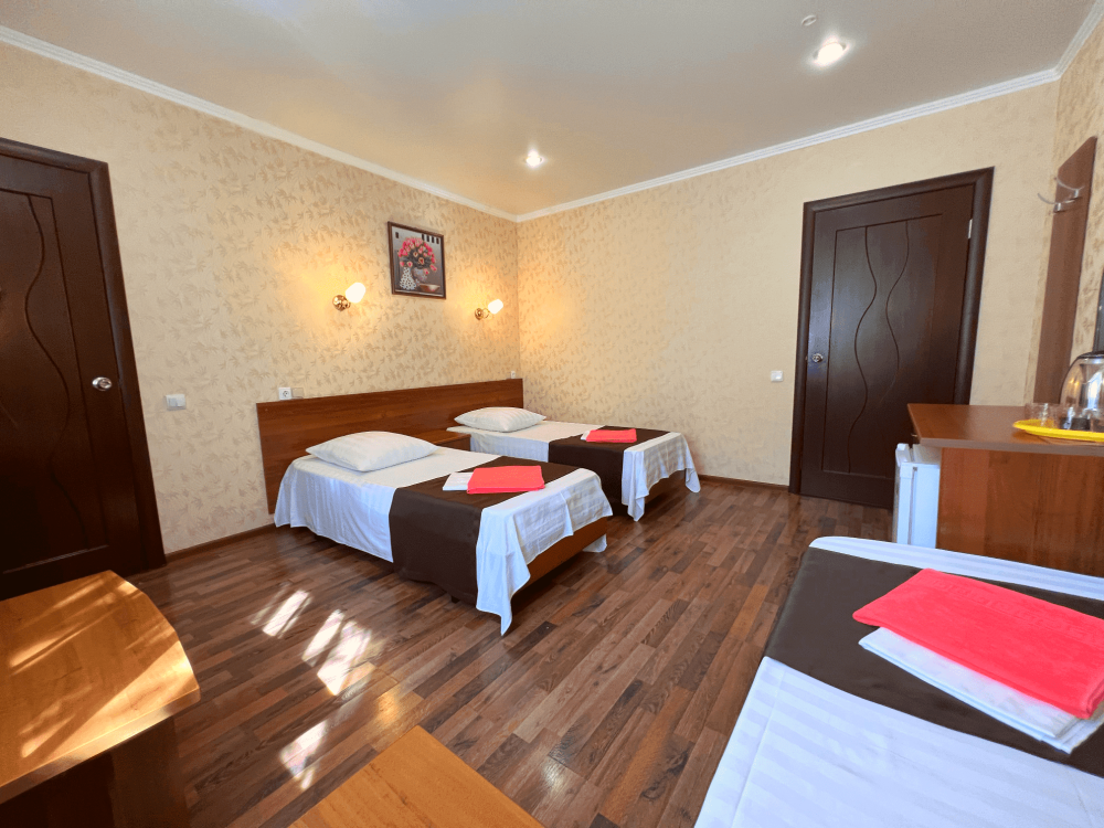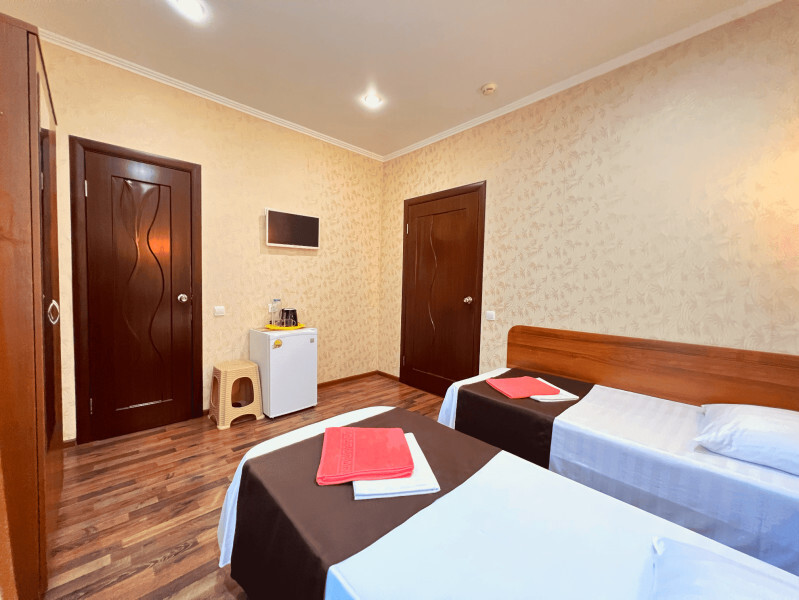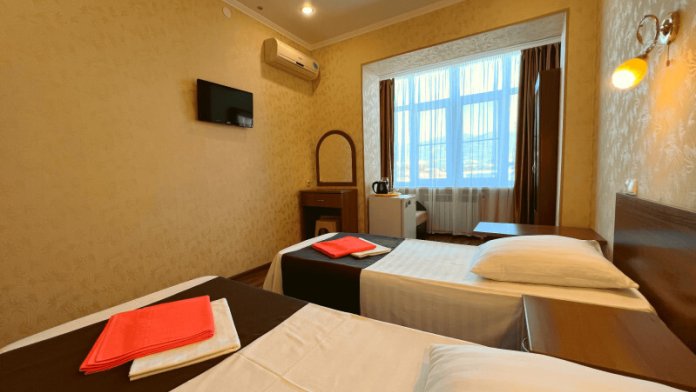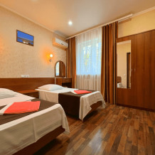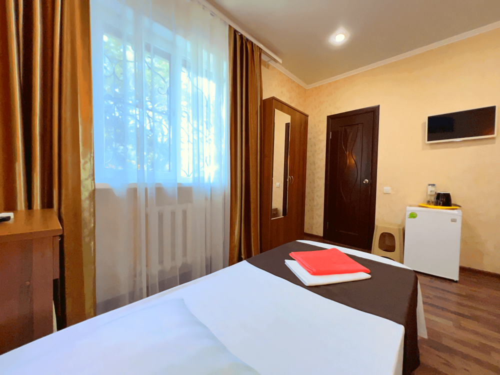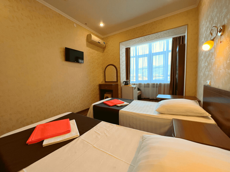 Все номера оборудованы кондиционерами, телевизорами, собственными санузлами с душем.
