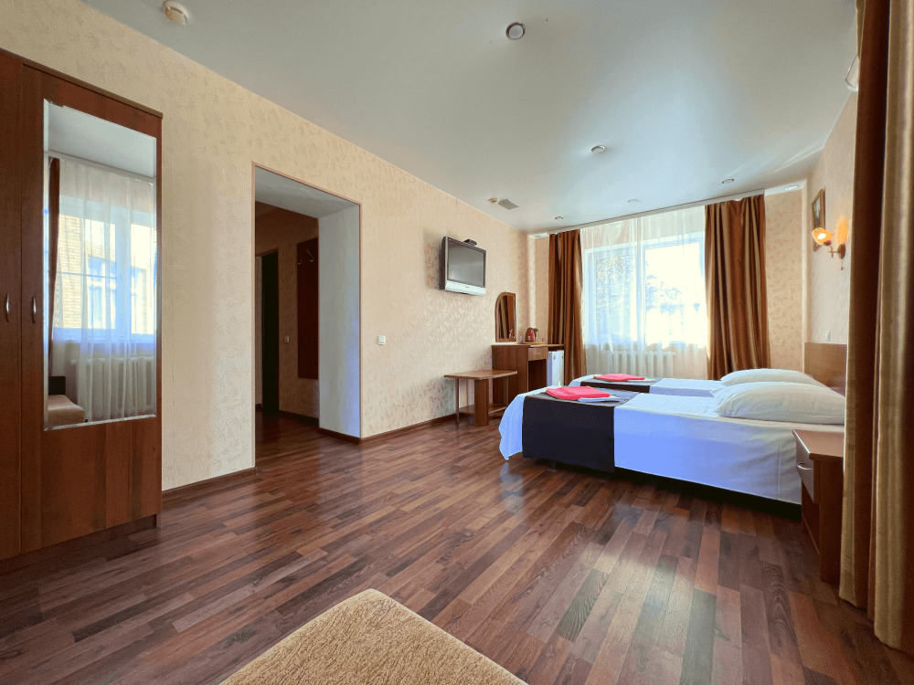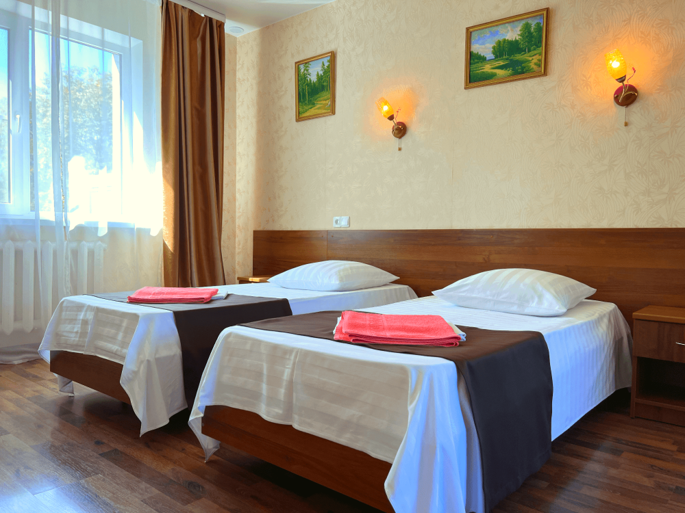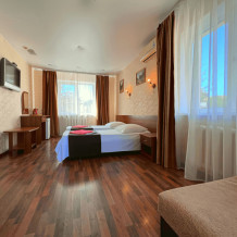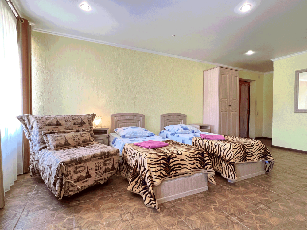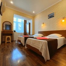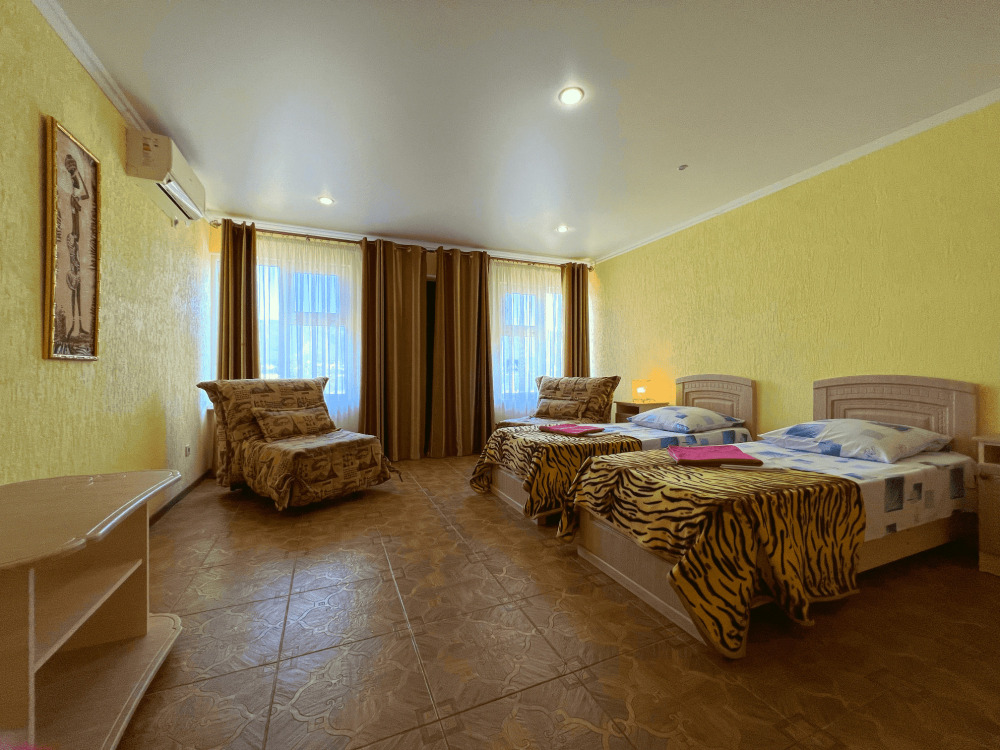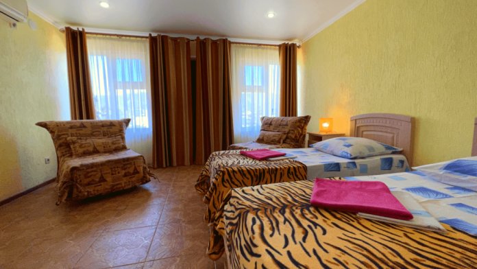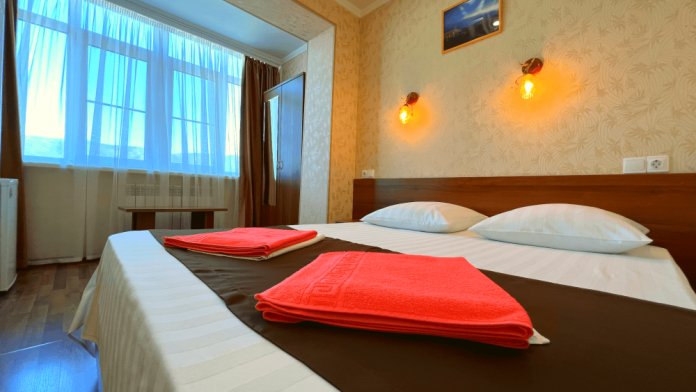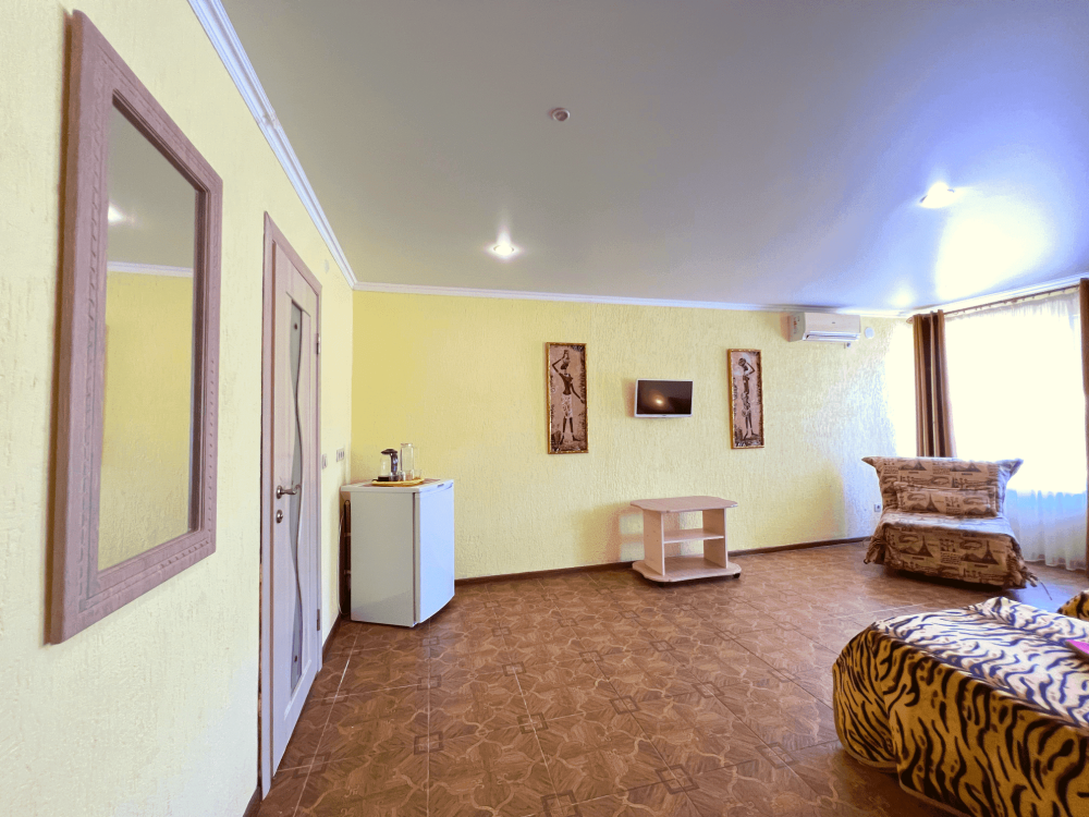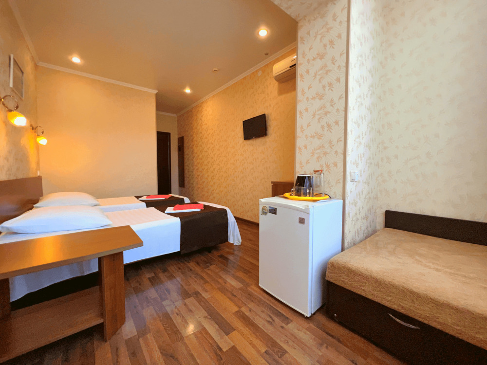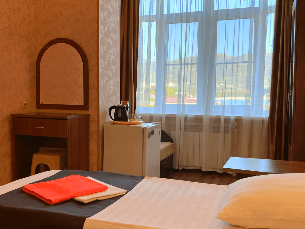 Все номера оборудованы кондиционерами, телевизорами, собственными санузлами с душем.