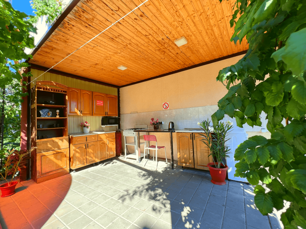На территории гостевого дома есть все необходимое для комфортного отдыха: мангальная зона, общая кухня, беседки в тени, а также парковка для автомобилей.