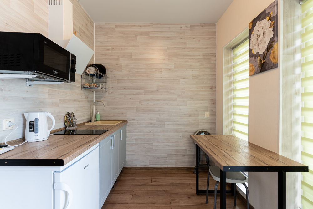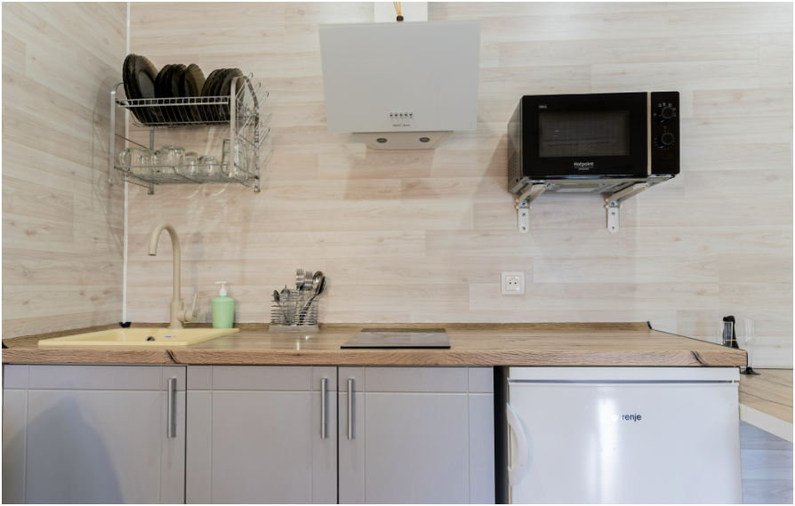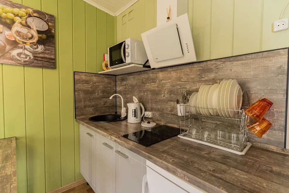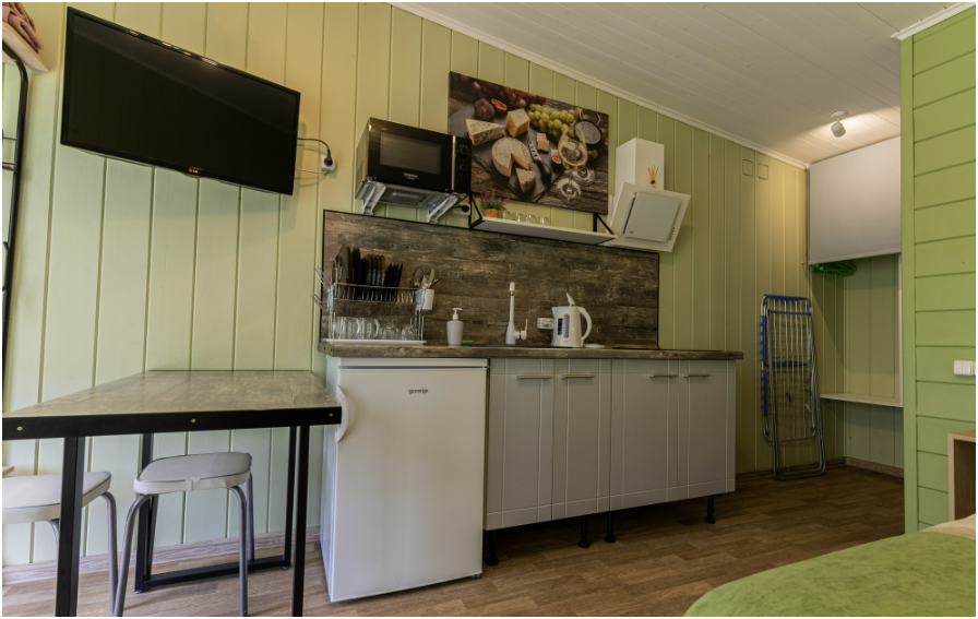 - Полностью оборудованная кухня в каждом номере.