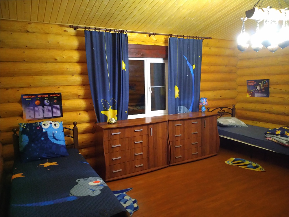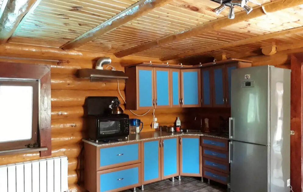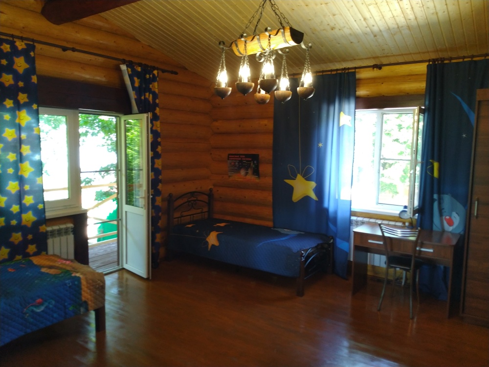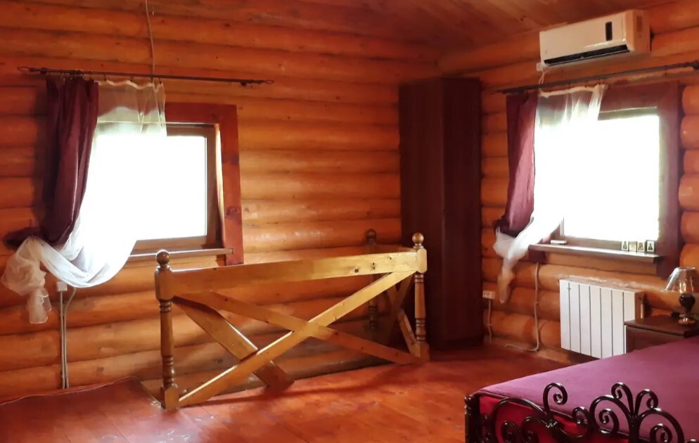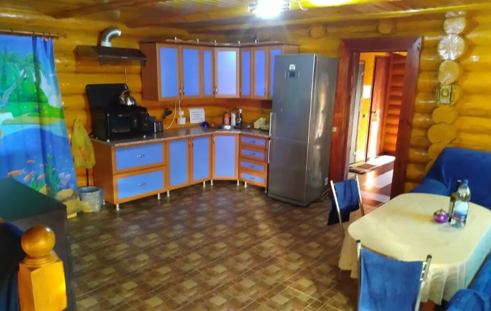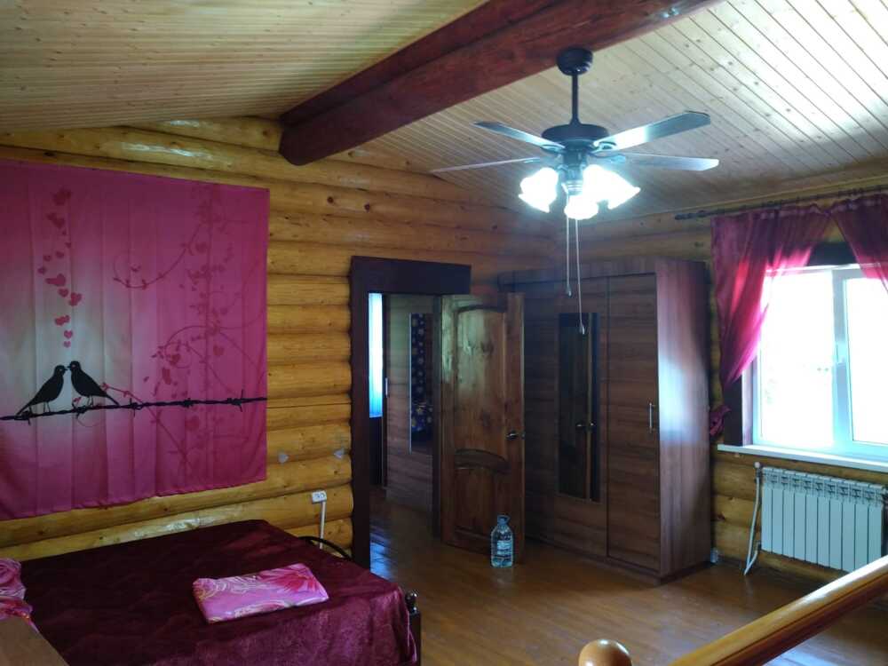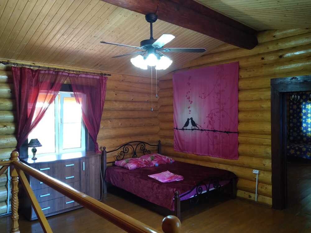 Дом 2 - 100 кв.м., 2 этажа - в полном распоряжении гостей. Дом обеспечен всей необходимой мебелью, кухней, оборудованием и посудой. В доме своя баня на дровах, санузел, душ, туалет, кухня-гостиная с диваном, спальня и детская на втором этаже, большой балкон по периметру дома. Гостям предоставляются полотенца, постельное белье, туалетные принадлежности, средства гигиены. Предпочтительно принимаем одну семью из 2 взрослых и 3 детей, на своем автомобиле. Возможно размещение с собаками.