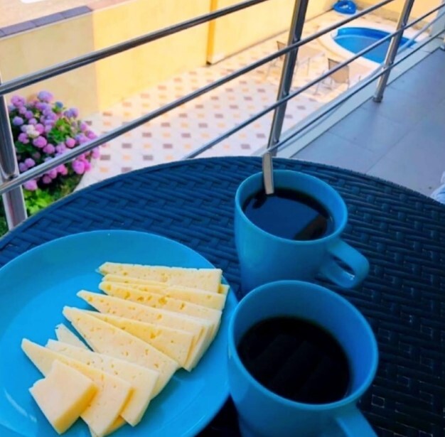 На территории гостевого дома в любое время можно позагорать у бассейна, пожарить блюда на мангале или посидеть в тени замечательной беседки в прованском стиле. Бассейн оснащен современным оборудованием для очистки и обеззараживания воды. Для самых маленьких отдыхающих мы построили площадку для игр. По запросу мы предоставляем трансфер.