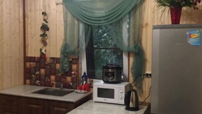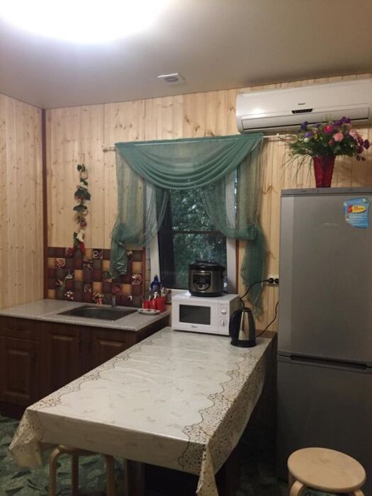 Номера 30-40 кв м и находятся на мансардном этаже. В номере есть кухонный гарнитур с раковиной, СВЧ-печь и мультиварка.