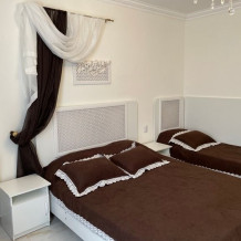 Номерной фонд гостевого дома составляют 3,4-местные благоустроенные номера. В каждом имеется все необходимое для комфортного отдыха: большой санузел с душем, установлены: сплит-система, телевизор, мини-кухня (холодильник, электрический чайник, электрическая плита, СВЧ-печь, посуда). Перед каждым номером есть стол и стулья для приятного времяпрепровождения на свежем воздухе. В номере возможна установка детской кроватки по предварительной заявке. Также в каждом номере имеется гладильная доска (мини), утюг.