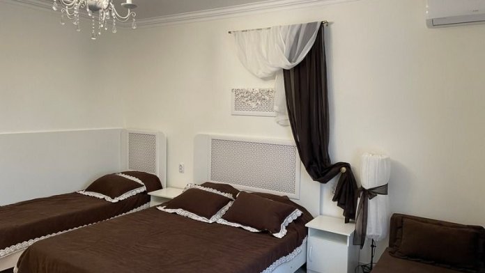 На территории мини-гостиницы есть мангал, детская площадка с батутом, детский бассейн с зоной отдыха, настольный теннис, настольный футбол, качели, качели кокон, настольные шашки. Имеется своя скважина с минерализованной соленой водой, источник резервного питания (дизель-генератор). Работает Wi-Fi. Парковка автомобилей рядом с домом или на бесплатной охраняемой автостоянке, расположенной в 1 минуте ходьбы от гостевого дома. Проживание с домашними животными по предварительной договоренности.