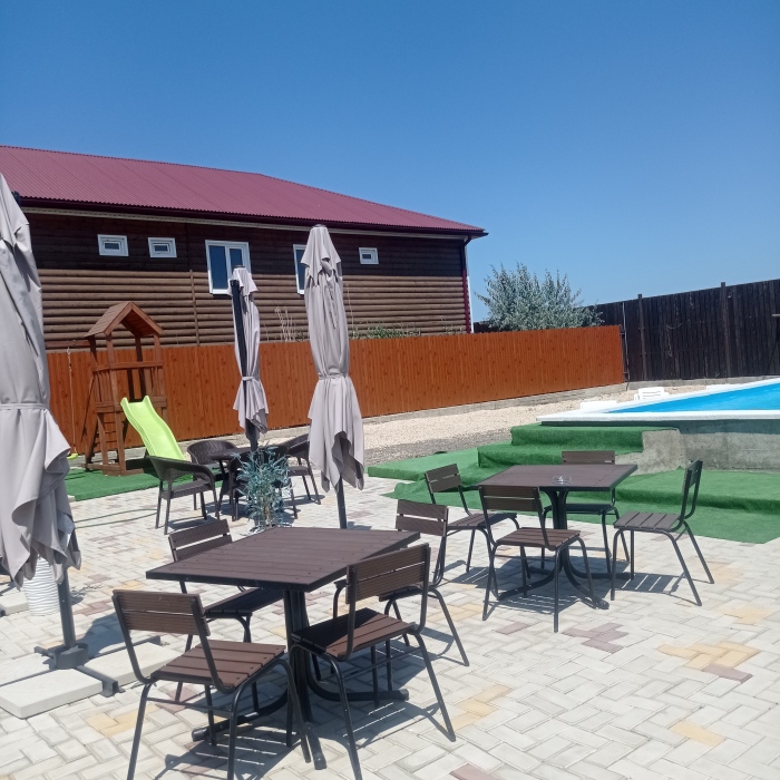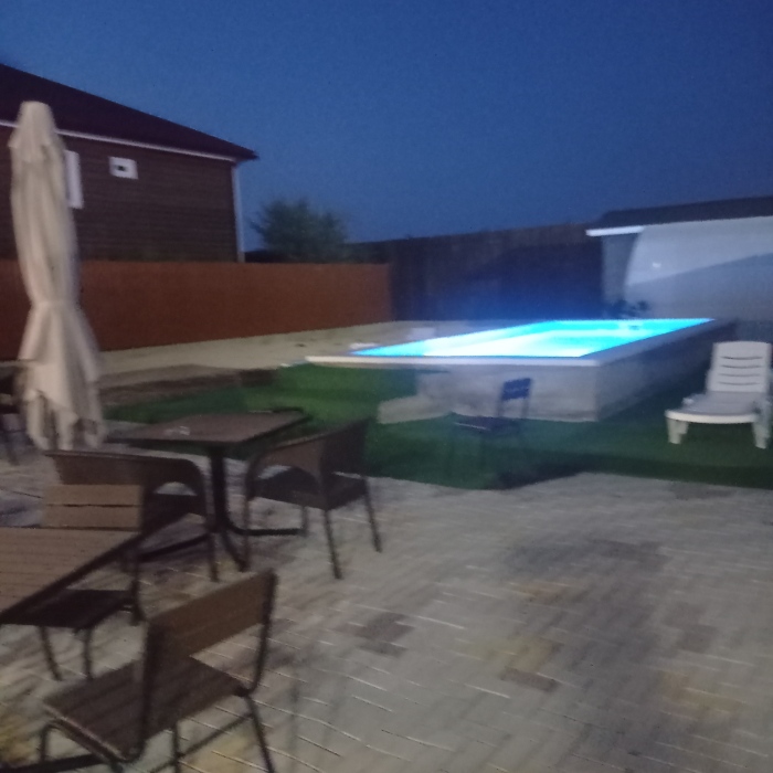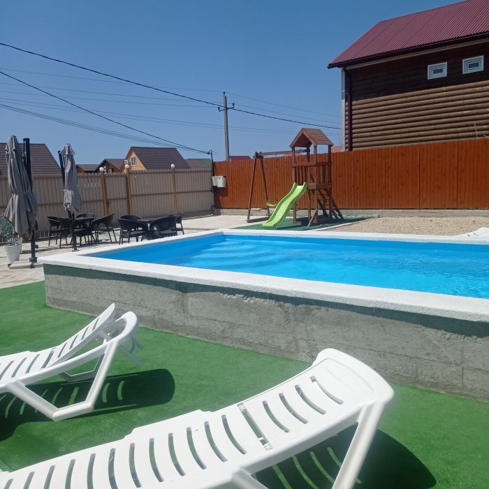 На территории благоустроенный двор, места для отдыха на свежем воздухе, бассейн, мангальная зона.