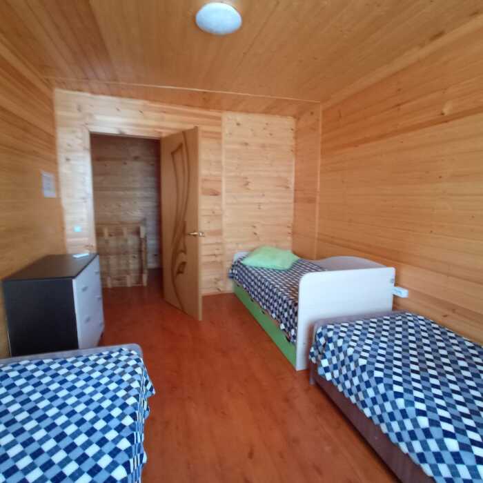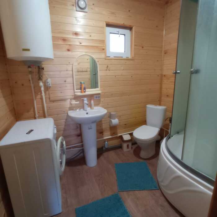 В доме 2 этажа, 3 комнаты на 9 мест, кухня, стиральная машина, два санузла. Смежных комнат нет.