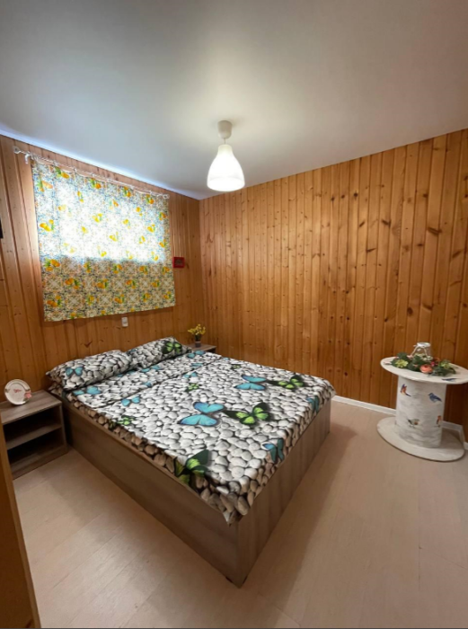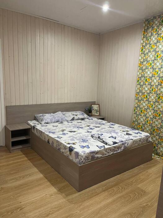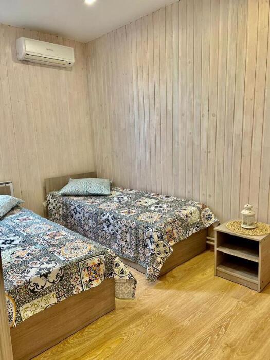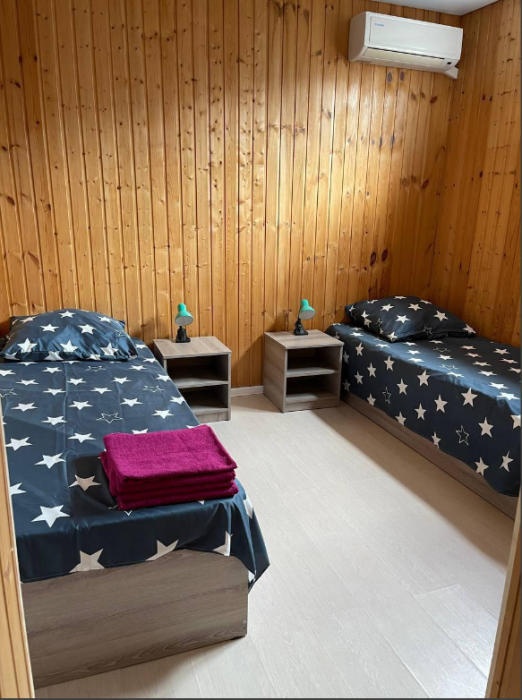 Большая двуспальная кровать либо 2 односпальные с ортопедическими матрасами.