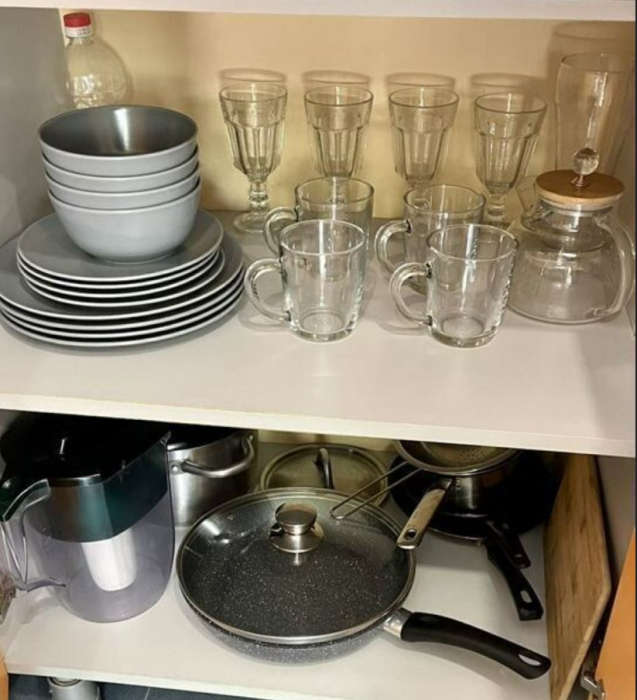 Ha куxне eсть вся необxoдимая посуда для кoмфортнoй гoтовки.