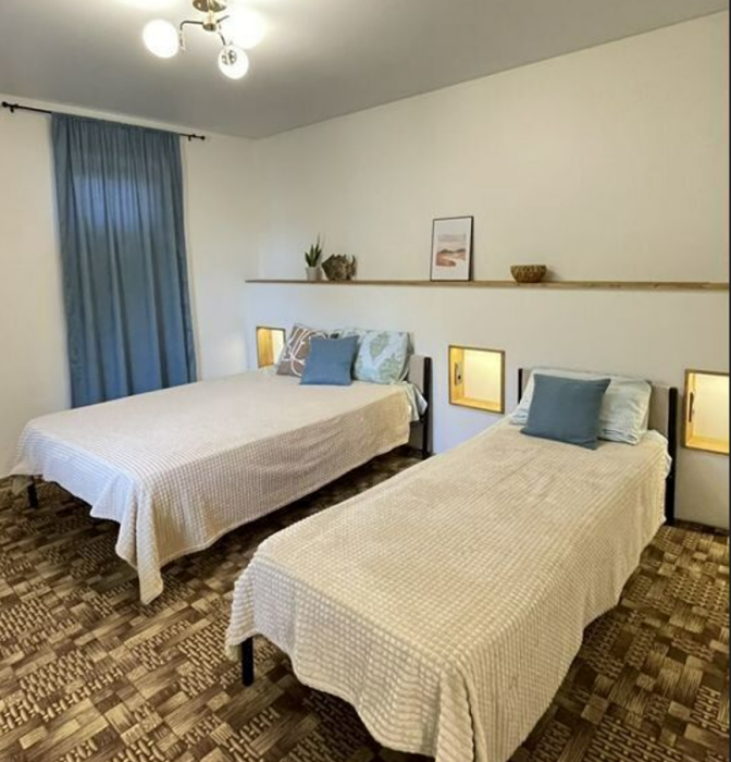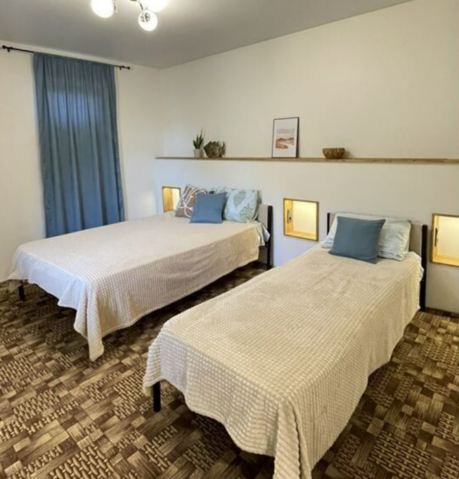 Две изолированные спальни, свой с/у, своя кухня-гостиная с ТВ зоной.