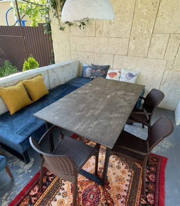 Гостевой дом «Родной» со своими кухнями, общим двором с плодовым садом, детской площадкой, мангальной зоной, детским бассейном. Территория зелёная и уютная