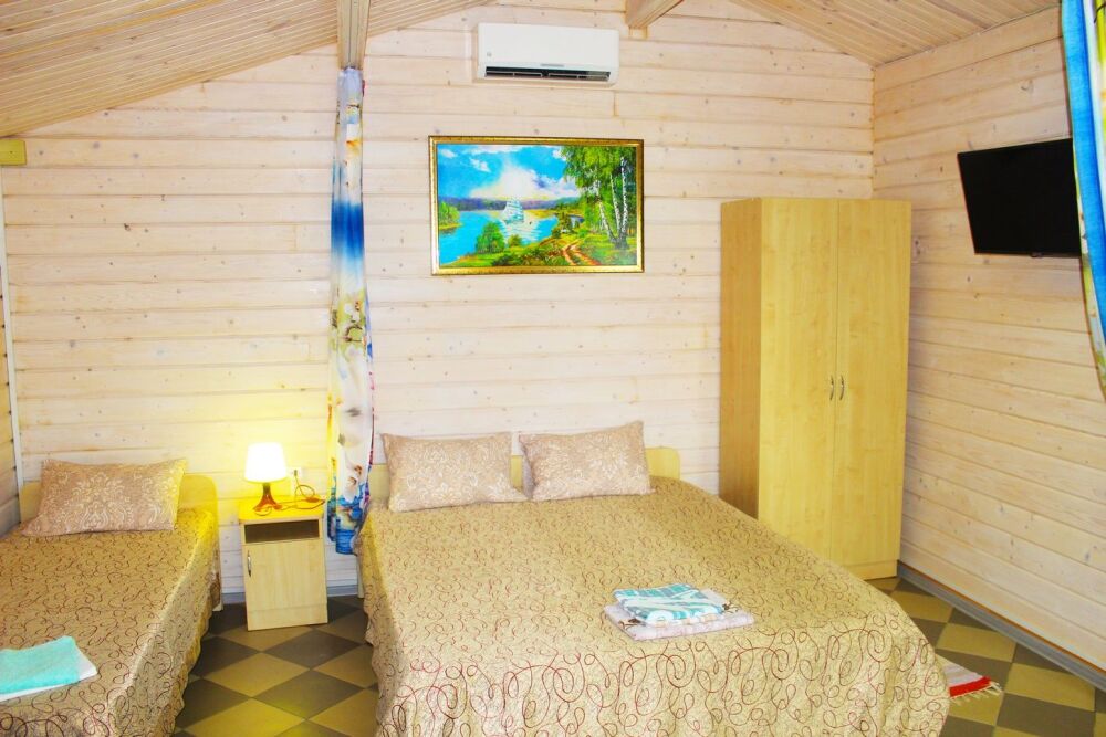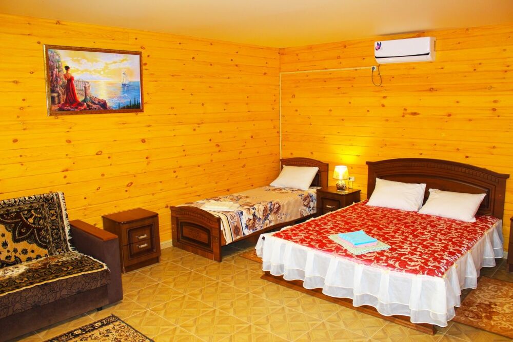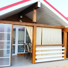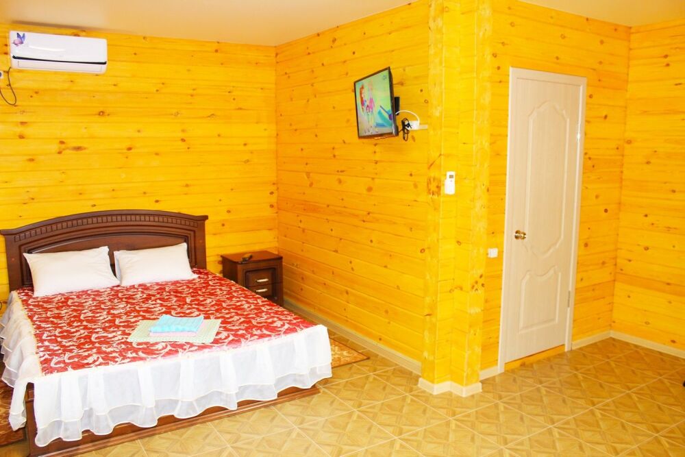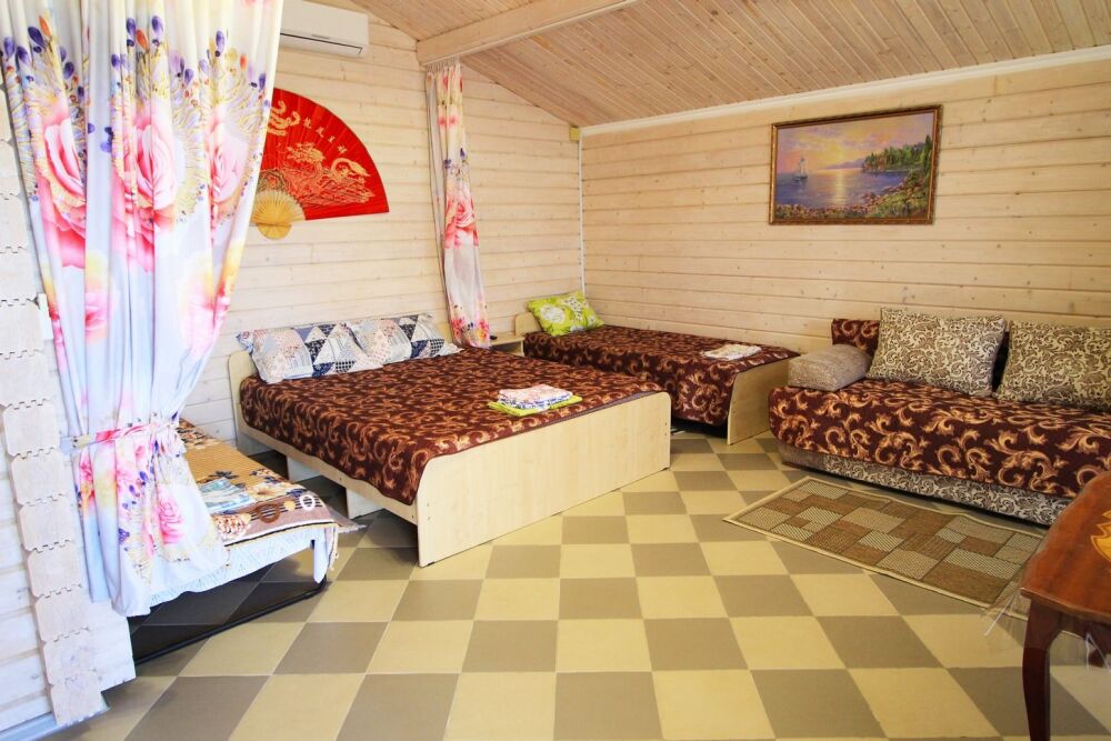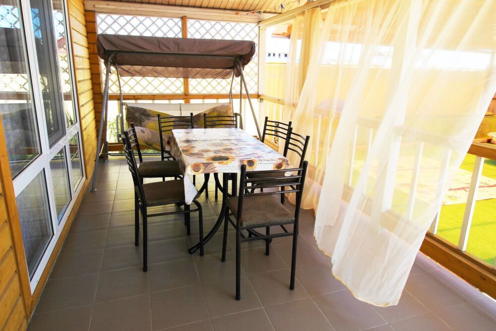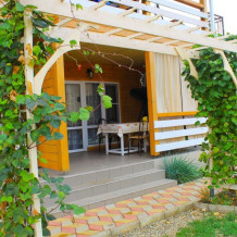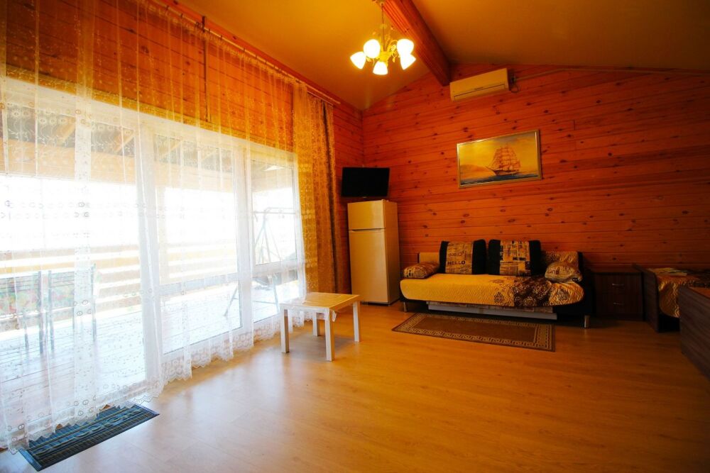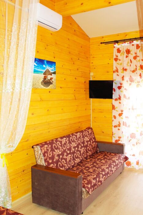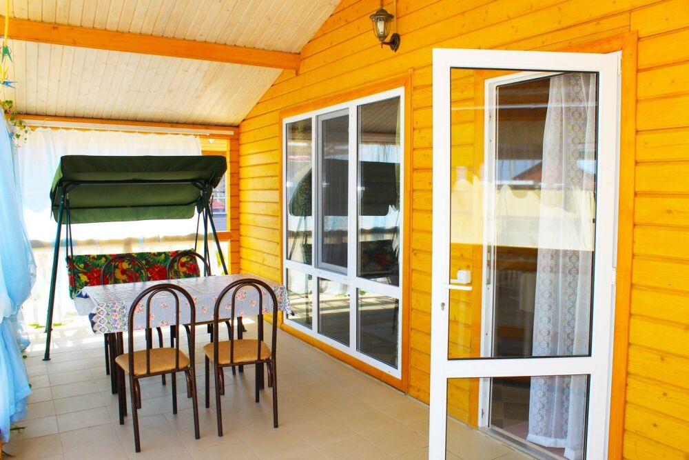 Уютный коттедж из толстого сибирского бруса надежно защитит от летнего зноя, но если захотите еще прохладнее мощный кондиционер моментально остудит комнату. Панорамное французское окно в пол, качественные матрасы, хорошая мебель и белоснежное выглаженное постельное белье, отличная шумоизоляция - все это залог крепкого здорового отдыха. На террасе обеденная группа, качели и кухня. С террасы вид на фруктовый сад и детскую площадку. Хотите отгородиться - достаточно закрыть плотные шторы, и покачиваясь на качелях с бокалом вина - слушать шум моря.