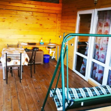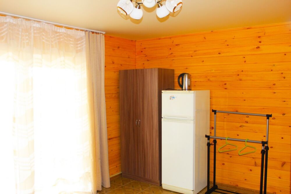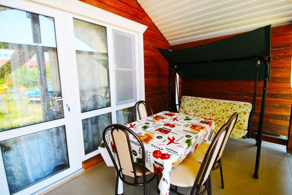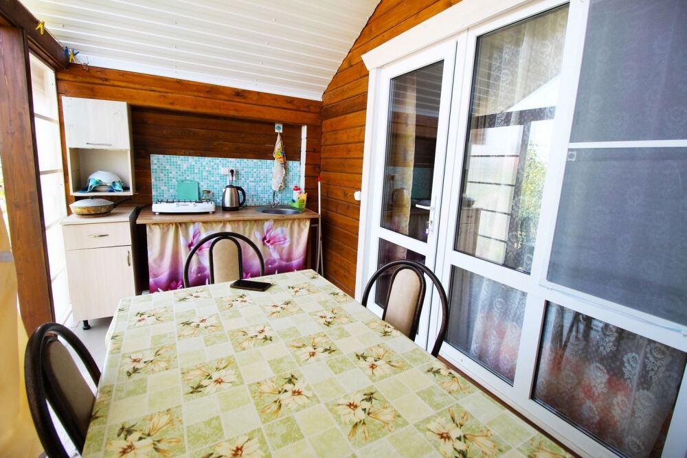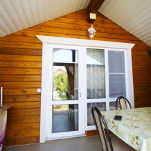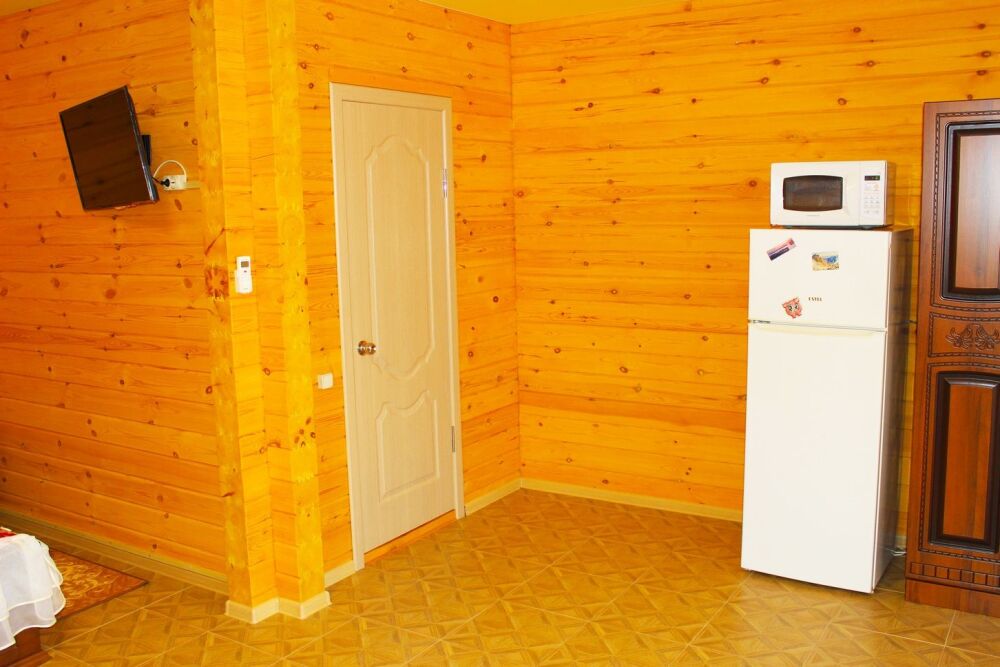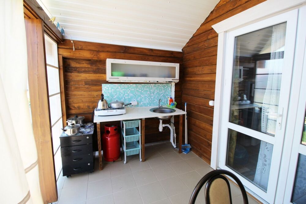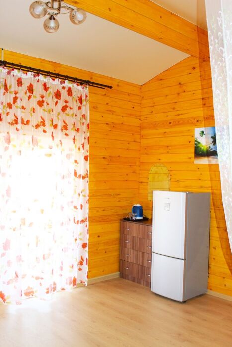 Большой уютный коттедж. Панорамное французское окно в пол. Натуральный брус, хорошая мебель, качественные матрасы и белоснежное выглаженное постельное белье - все это залог крепкого здорового отдыха. На террасе обеденная группа и качели. В отдельно стоящем домике своя индивидуальная кухня. Посуды достаточно , чтобы приготовить что угодно , а если чего то не хватит - мы Вам предоставим. Плита, микроволновая печь, чайник, бокалы. Для сохранности продуктов предусмотрен свой большой полноценный холодильник с морозильной камерой. Просторный санузел с душевой.